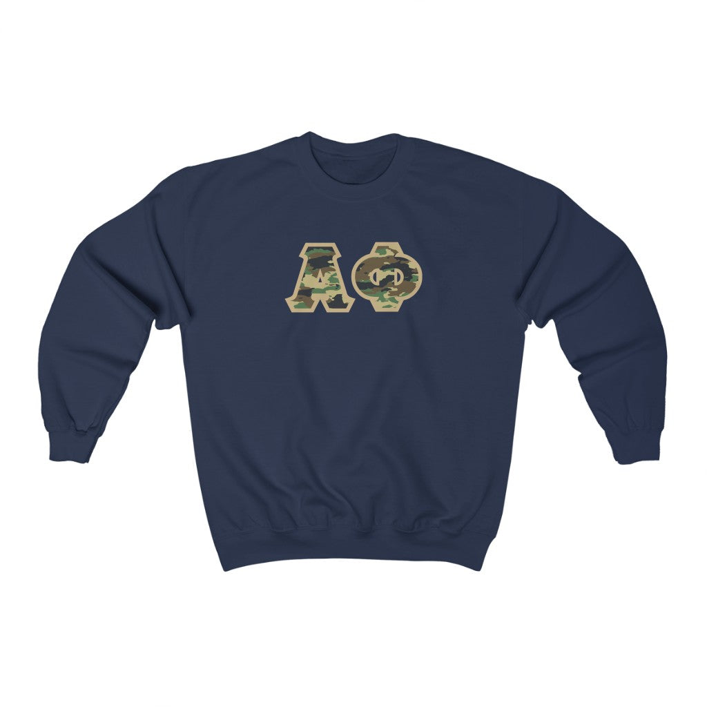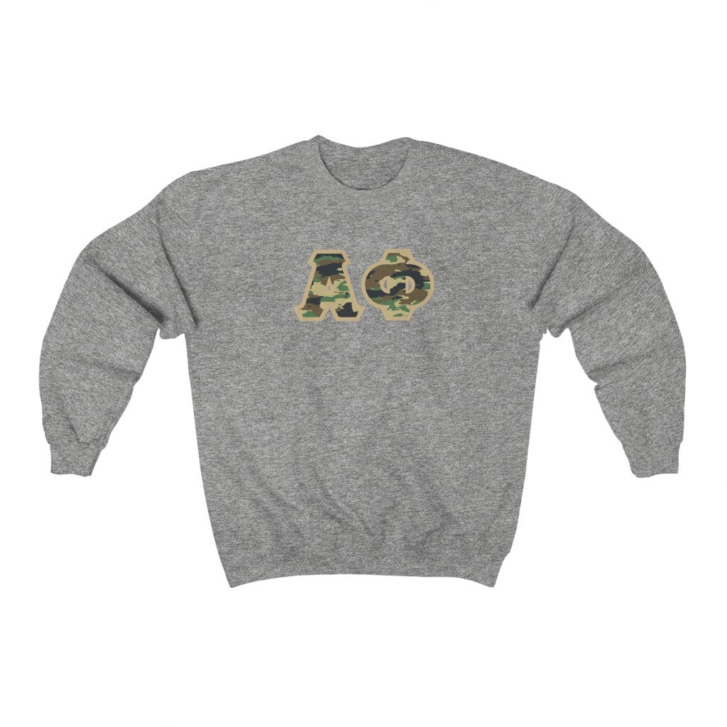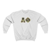 Alpha Phi Printed Letters | Camouflage Crewneck