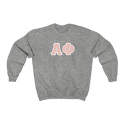 Alpha Phi Printed Letters | Peach & White Border Crewneck