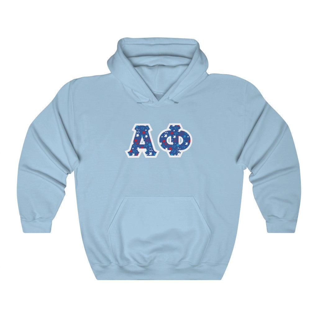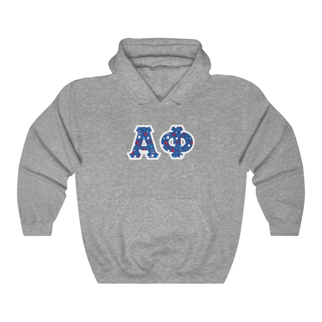 These Alpha Phi sorority letters are printed NOT stitched. They come in a number of color and garment options.