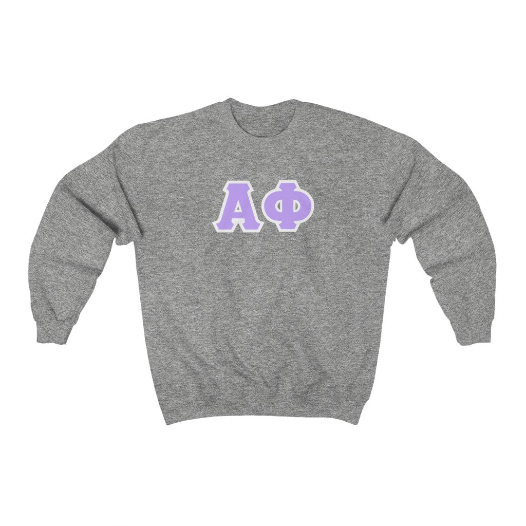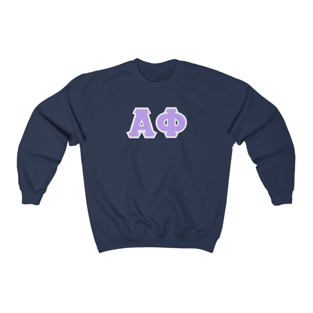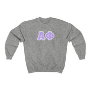 Alpha Phi Printed Letters | Violet & White Border Crewneck