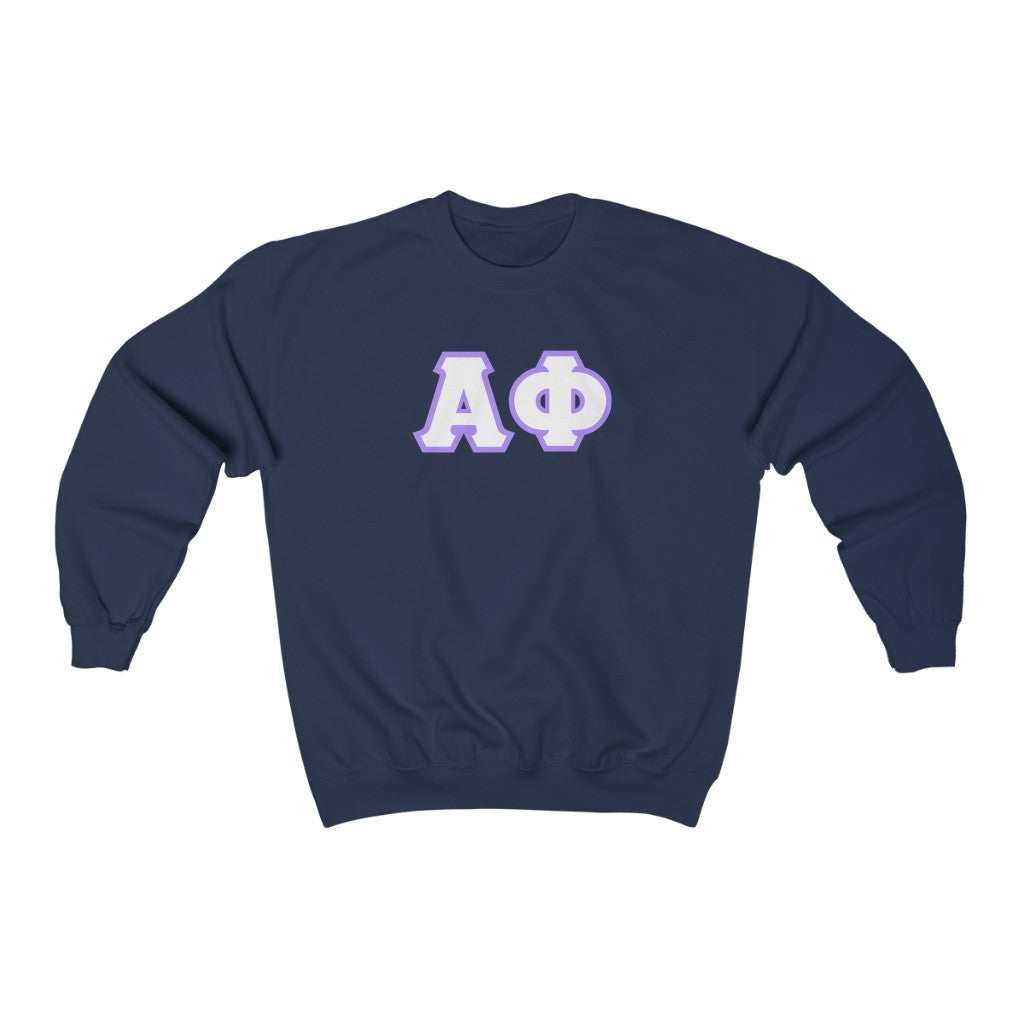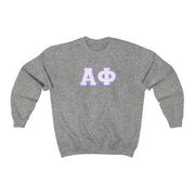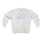 Alpha Phi Printed Letters | White & Violet Border Crewneck