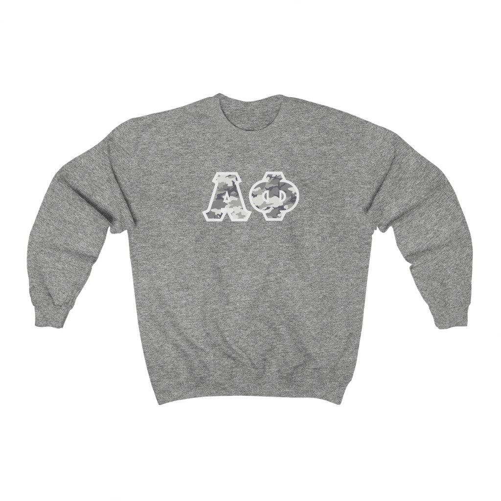 Alpha Phi Printed Letters | Winter Camo Crewneck