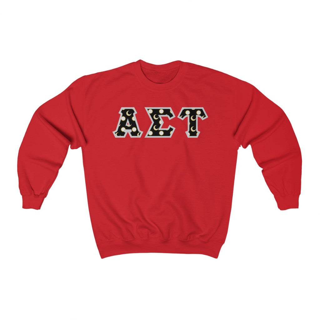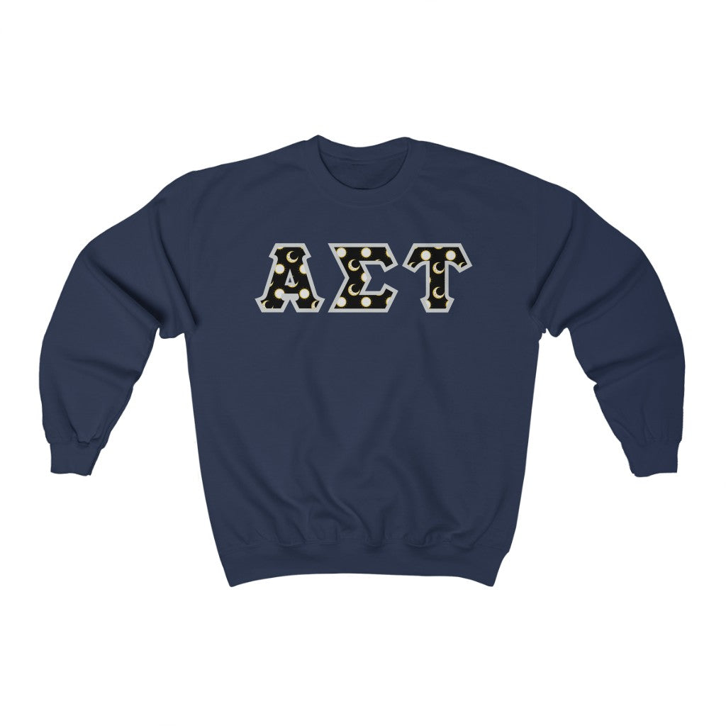 Alpha Sigma Tau Printed Letters | Sun and Moon Crewnecks