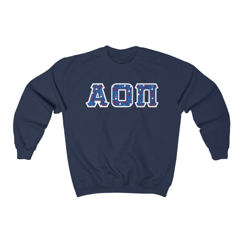 Alpha Omicron Pi Printed Letters | American Stars Crewneck