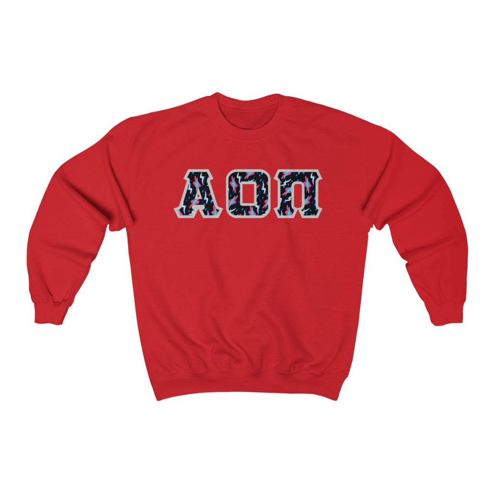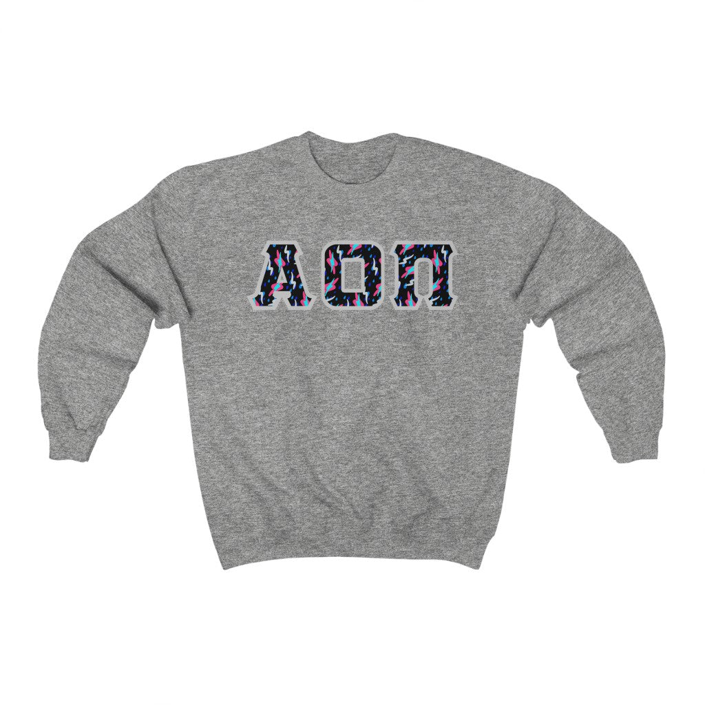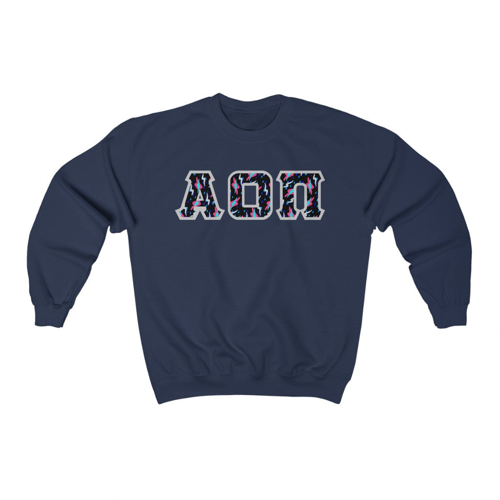 Alpha Omicron Pi Printed Letters | Bayside Black Crewneck