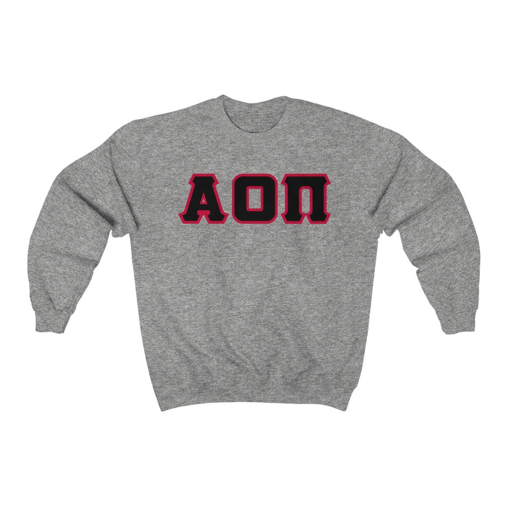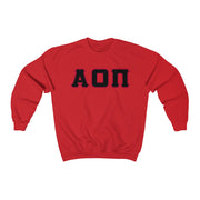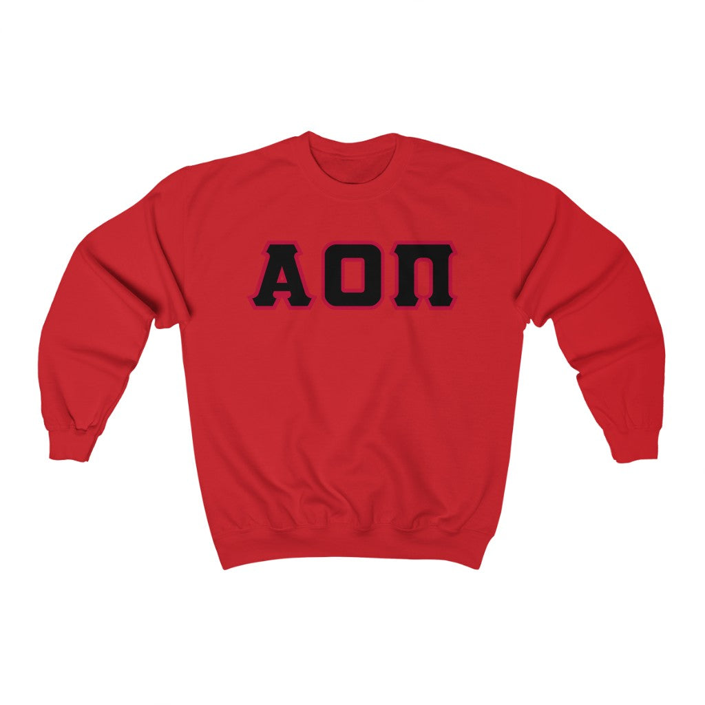 Alpha Omicron Pi Printed Letters | Black with Cardinal Border Crewneck
