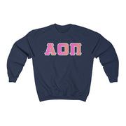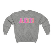 Alpha Omicron Pi Printed Letters | Bubble Gum with Grey Border Crewneck