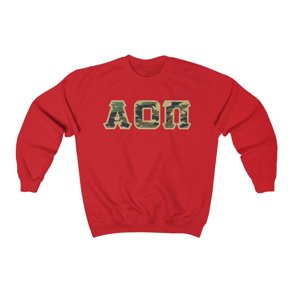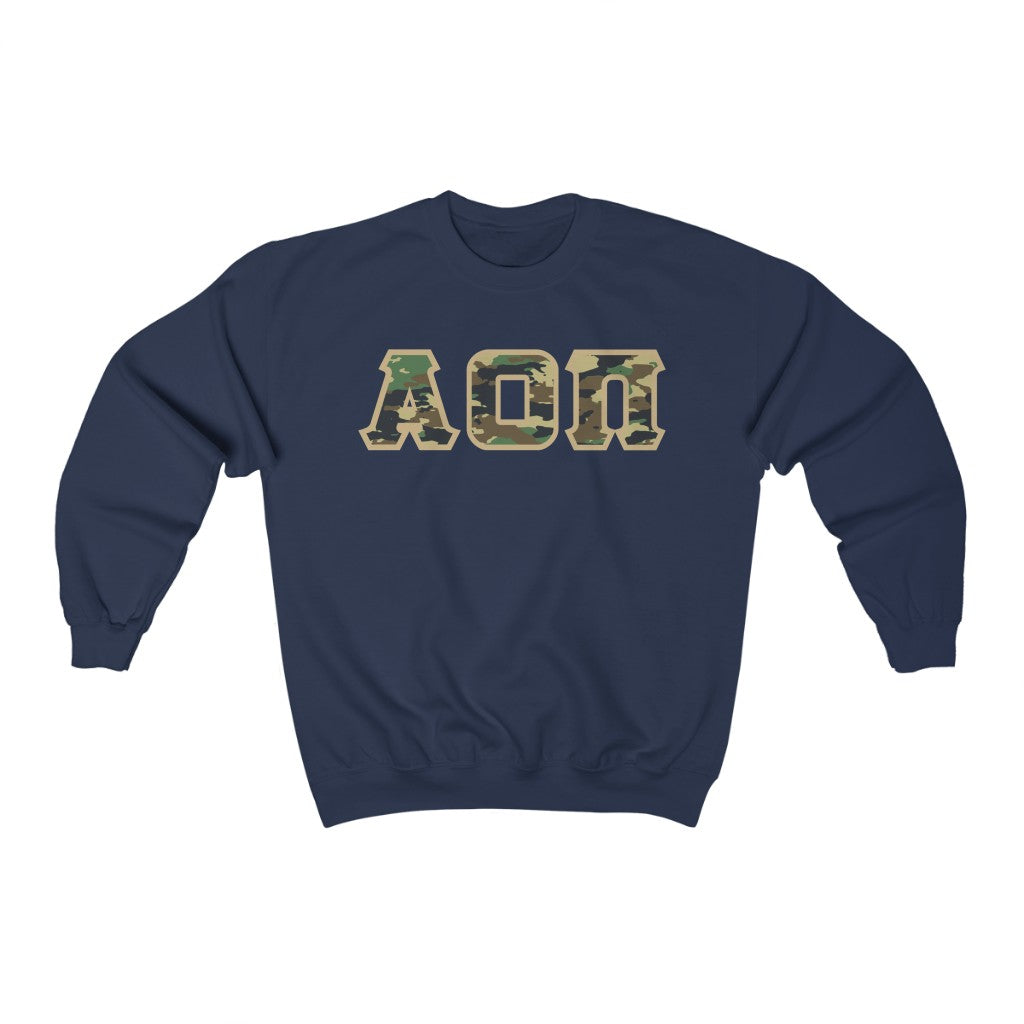 Alpha Omicron Pi Printed Letters | Camouflage Crewneck