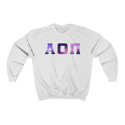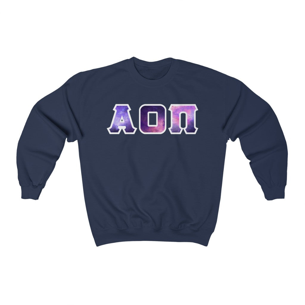 Alpha Omicron Pi Printed Letters | Galaxy Crewneck