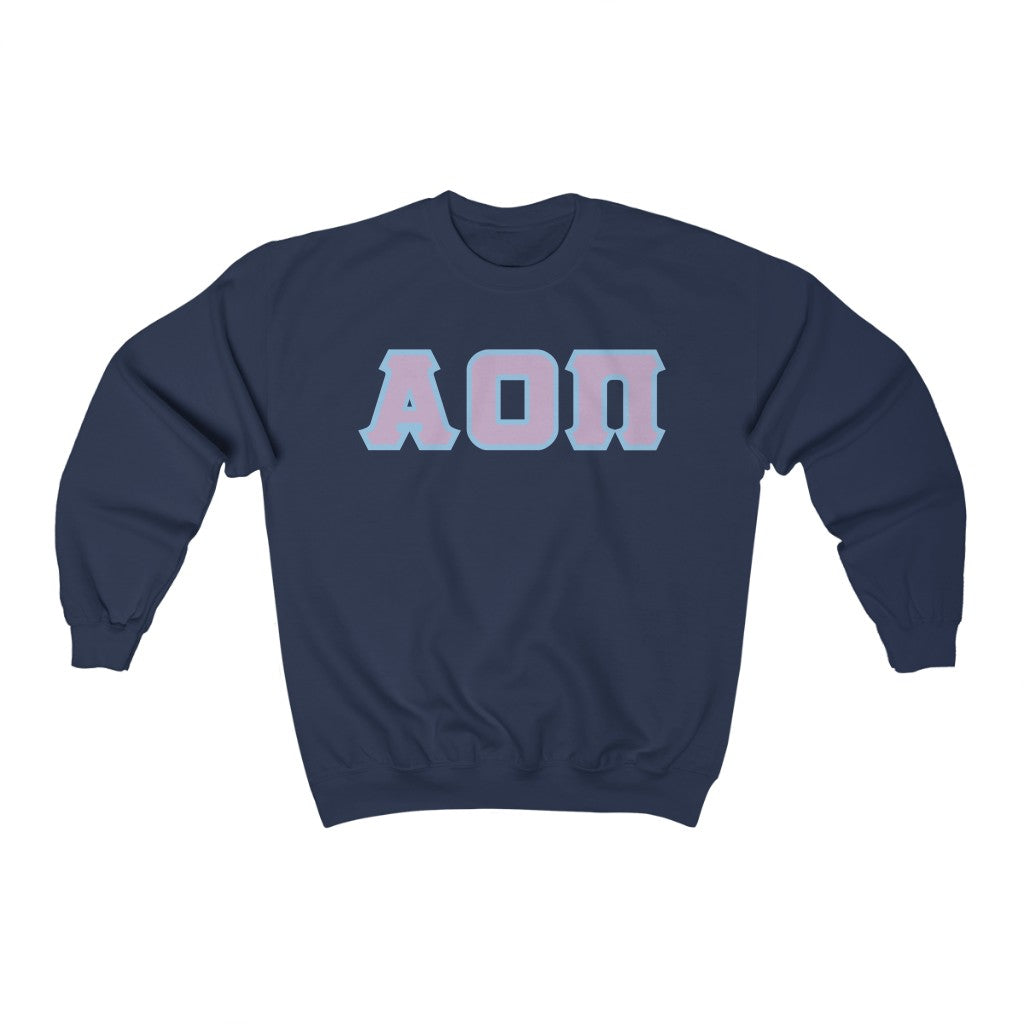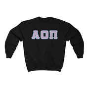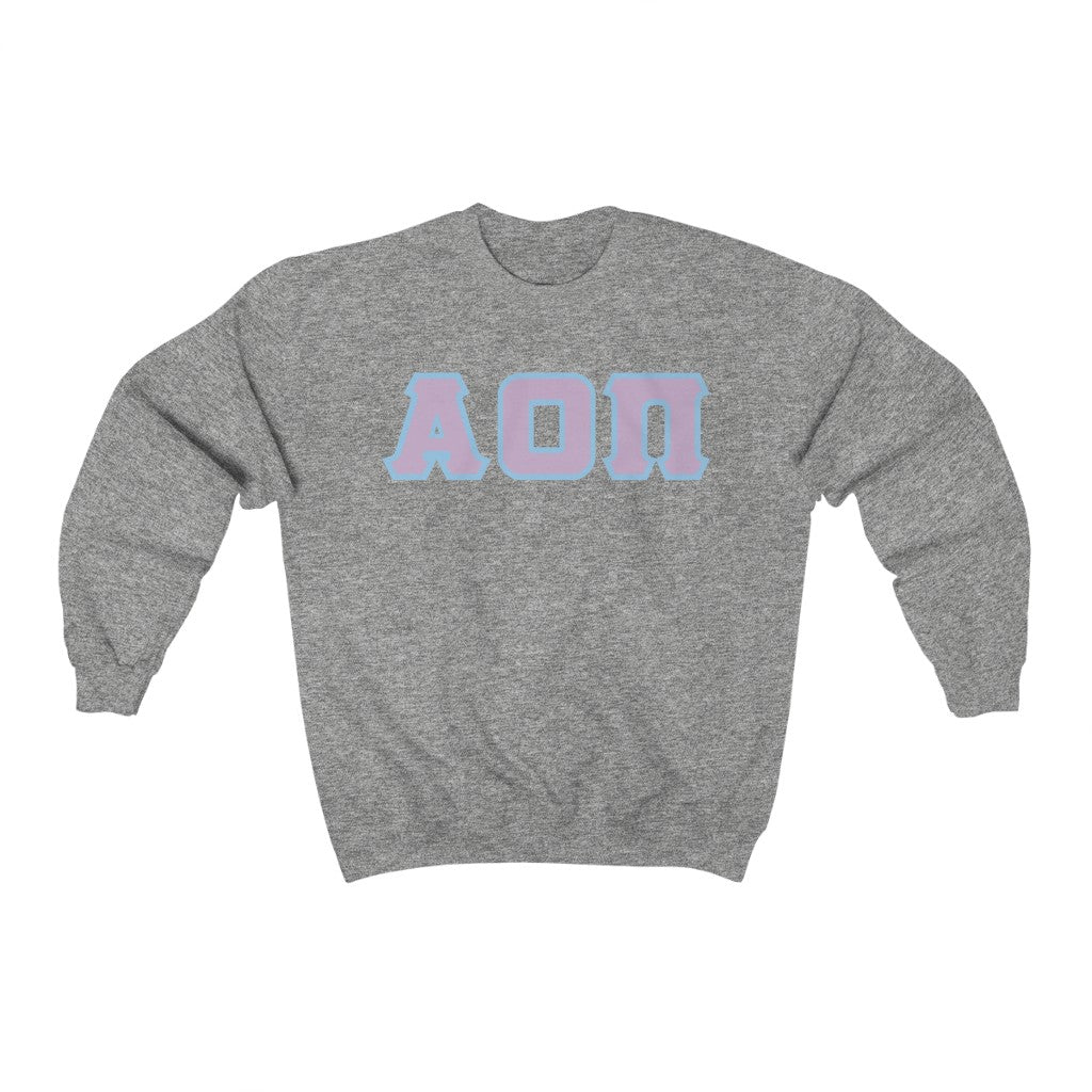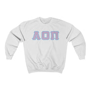 Alpha Omicron Pi Printed Letters | Lavender with L Blue Border Crewneck