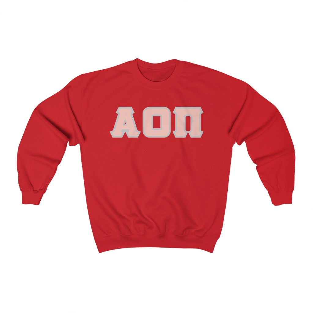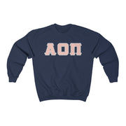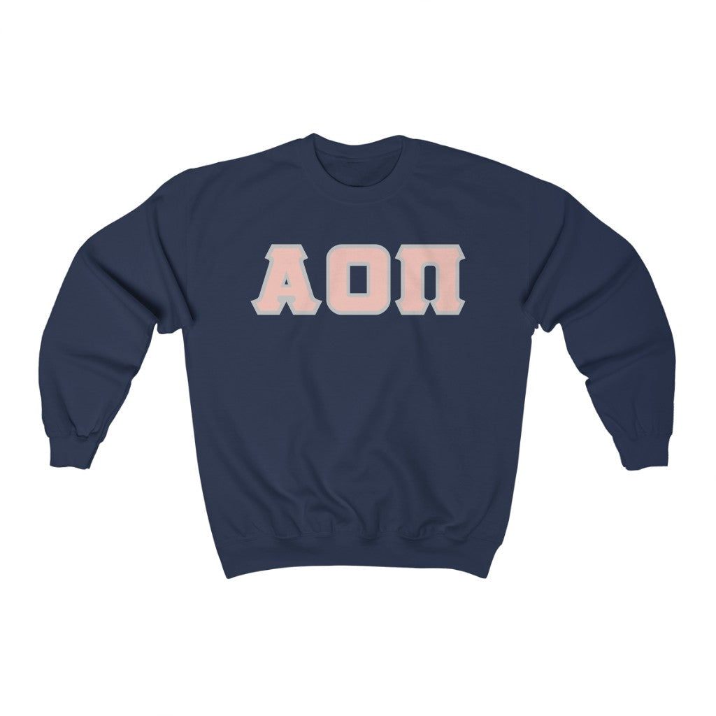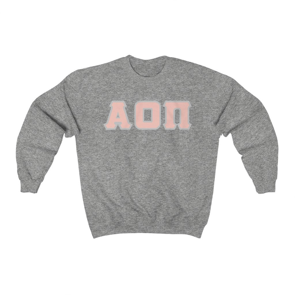 Alpha Omicron Pi Printed Letters | Peach with Grey Border Crewneck