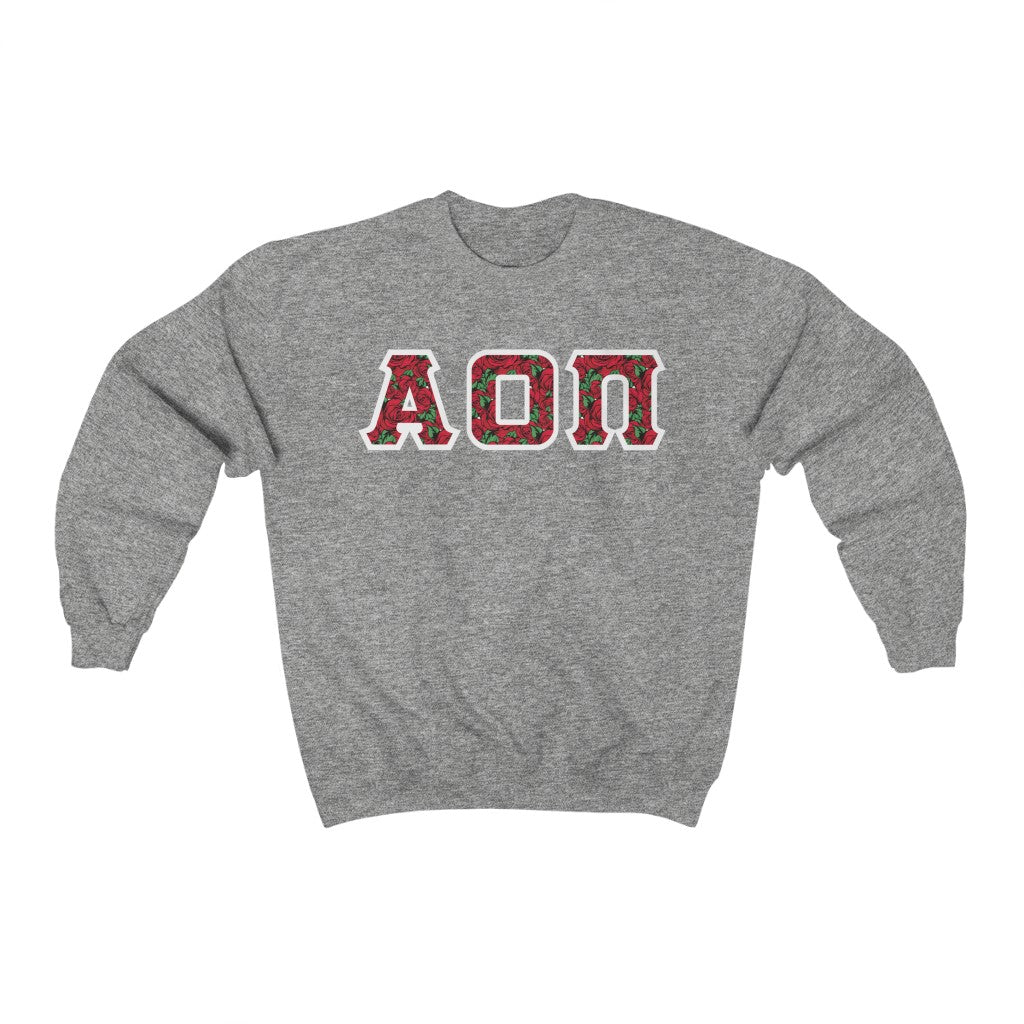 Alpha Omicron Pi Printed Letters | Roses Crewneck