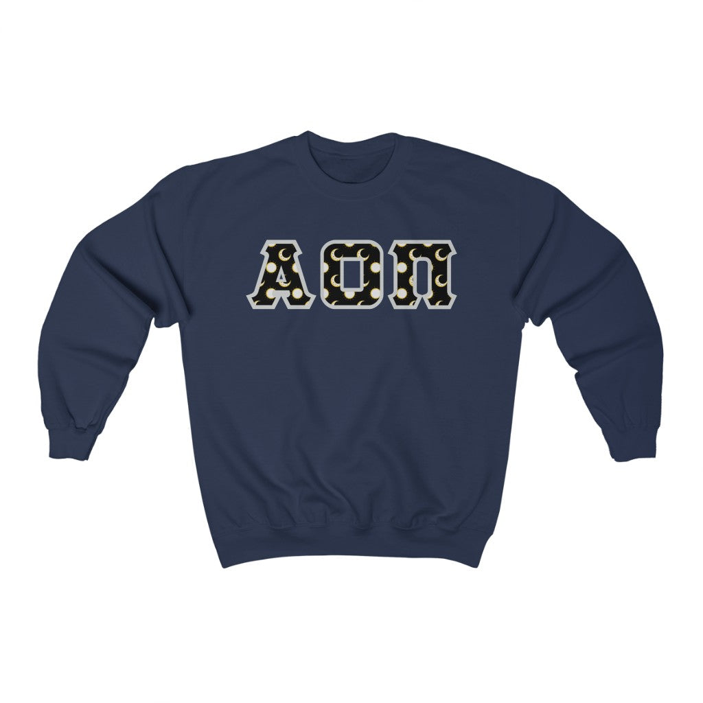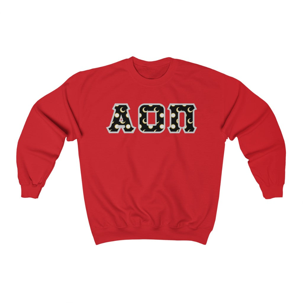 Alpha Omicron Pi Printed Letters | Sun and Moon Crewneck