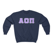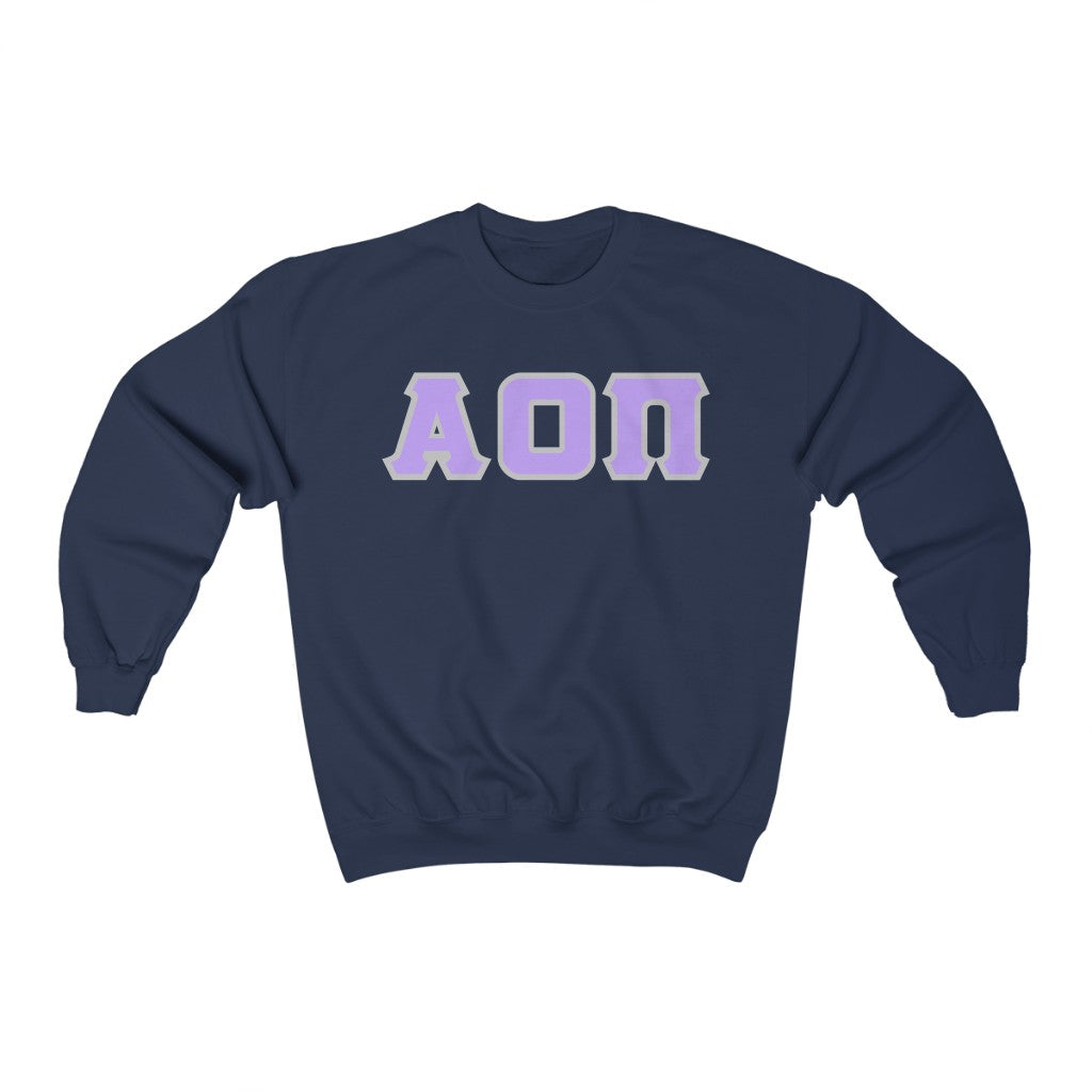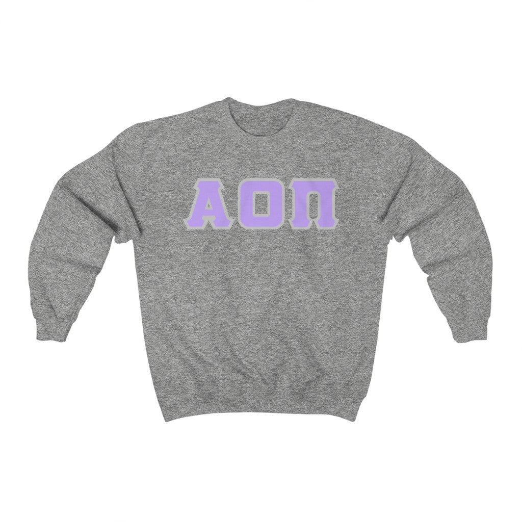 Alpha Omicron Pi Printed Letters | Violet with Grey Border Crewneck