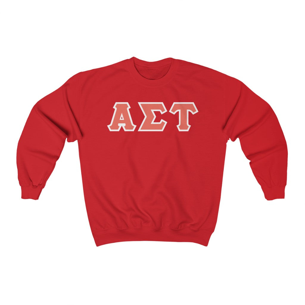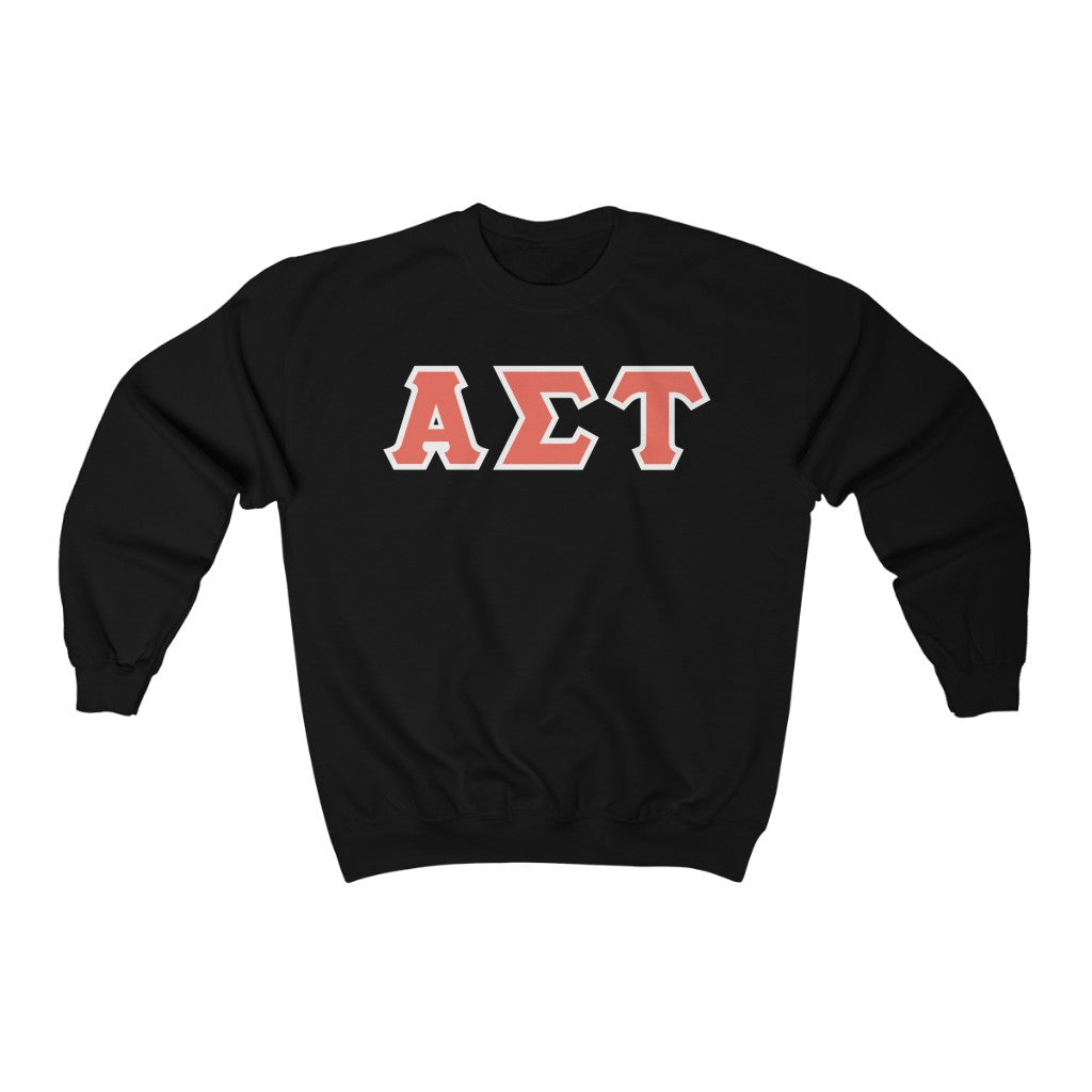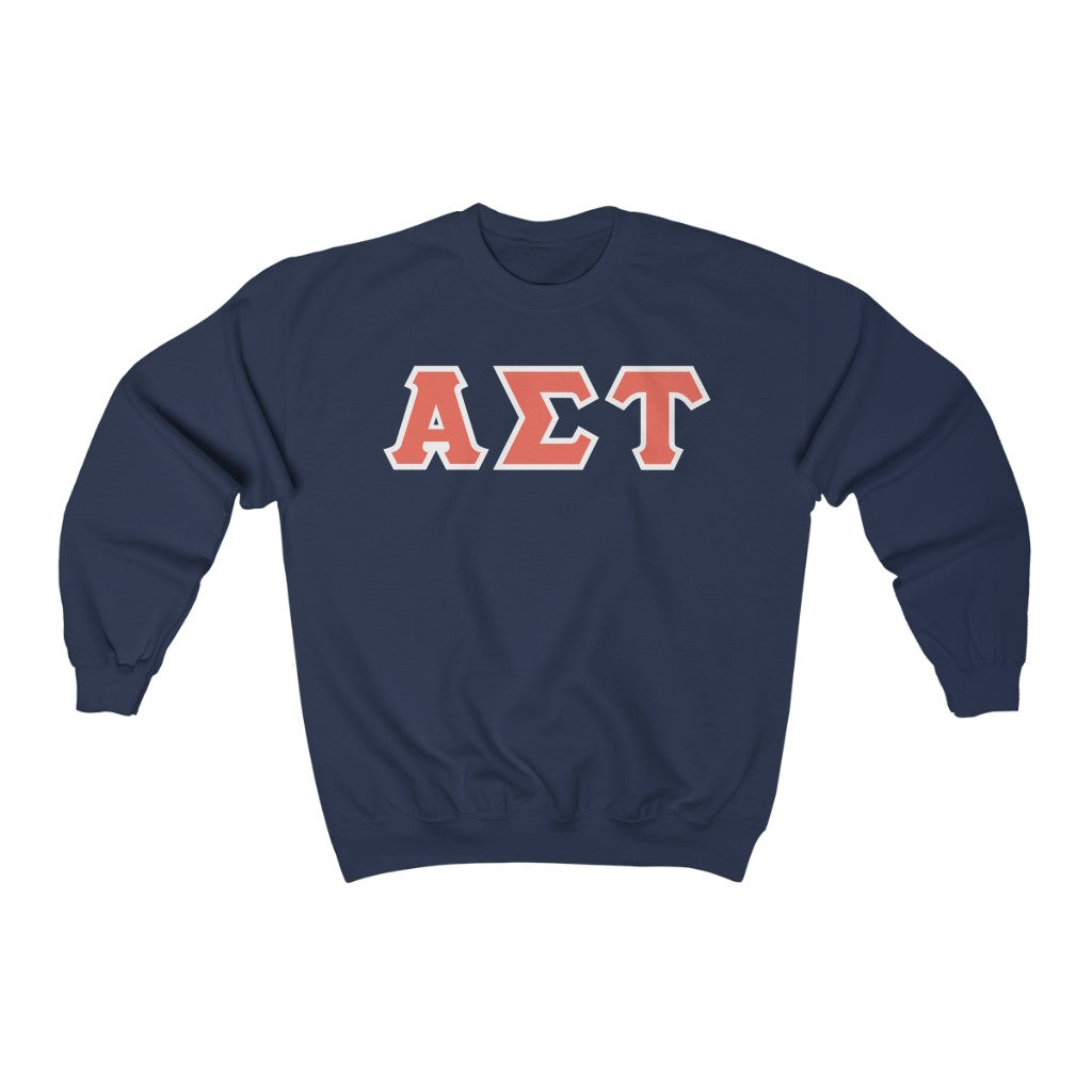These Alpha Sigma Tau sorority letters are printed NOT stitched. They come in a number of color and garment options.