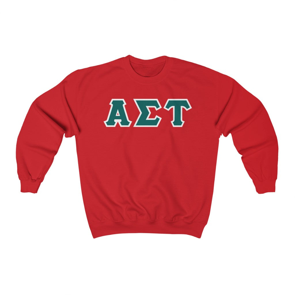 These Alpha Sigma Tau sorority letters are printed NOT stitched. They come in a number of color and garment options.