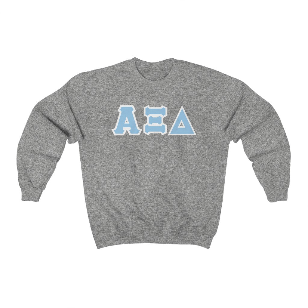 These Alpha Xi Delta sorority letters are printed NOT stitched. They come in a number of color and garment options.