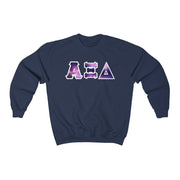 These Alpha Xi Delta sorority letters are printed NOT stitched. They come in a number of color and garment options.