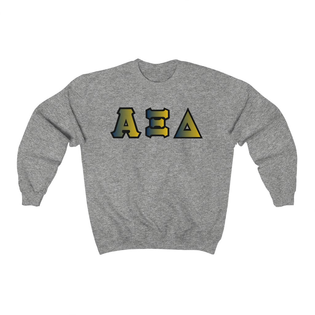 These Alpha Xi Delta sorority letters are printed NOT stitched. They come in a number of color and garment options.