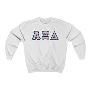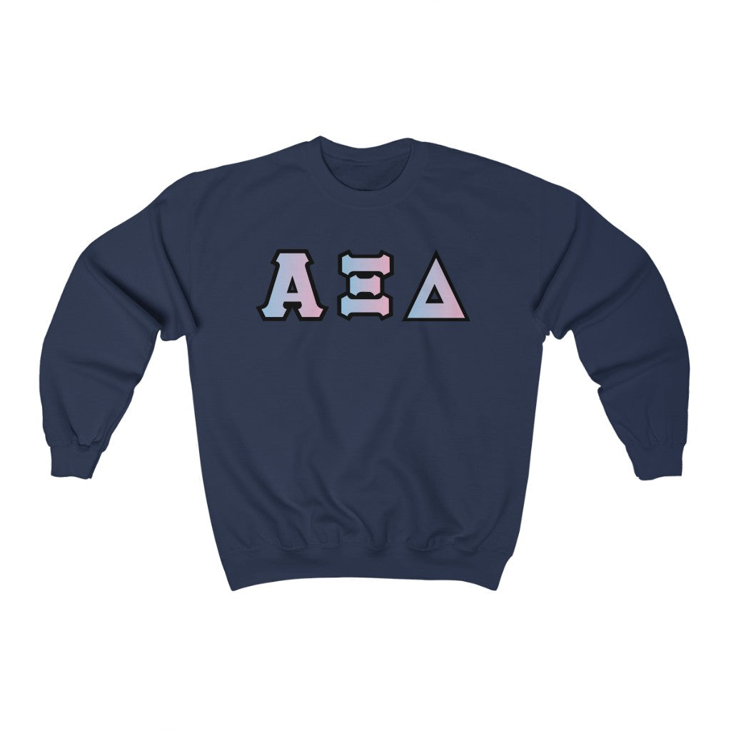 These Alpha Xi Delta sorority letters are printed NOT stitched. They come in a number of color and garment options.