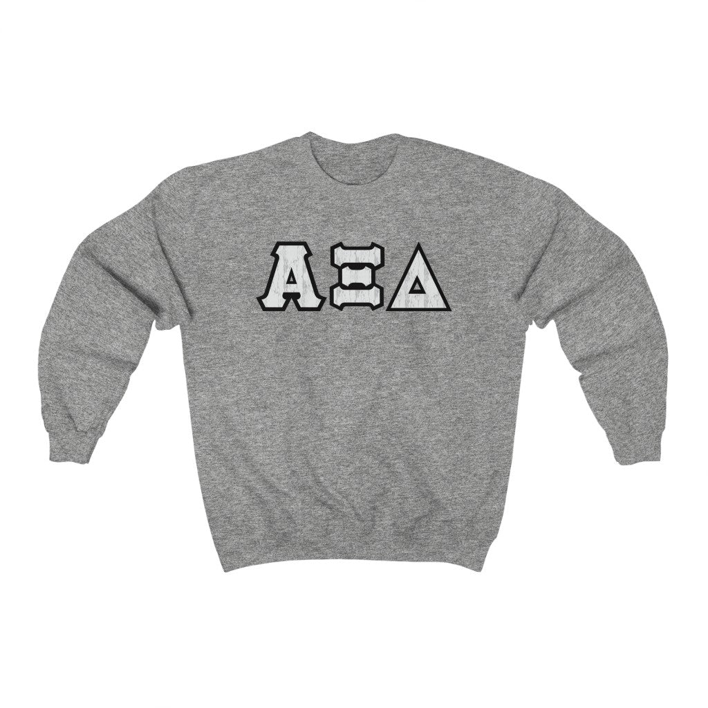 These Alpha Xi Delta sorority letters are printed NOT stitched. They come in a number of color and garment options.