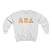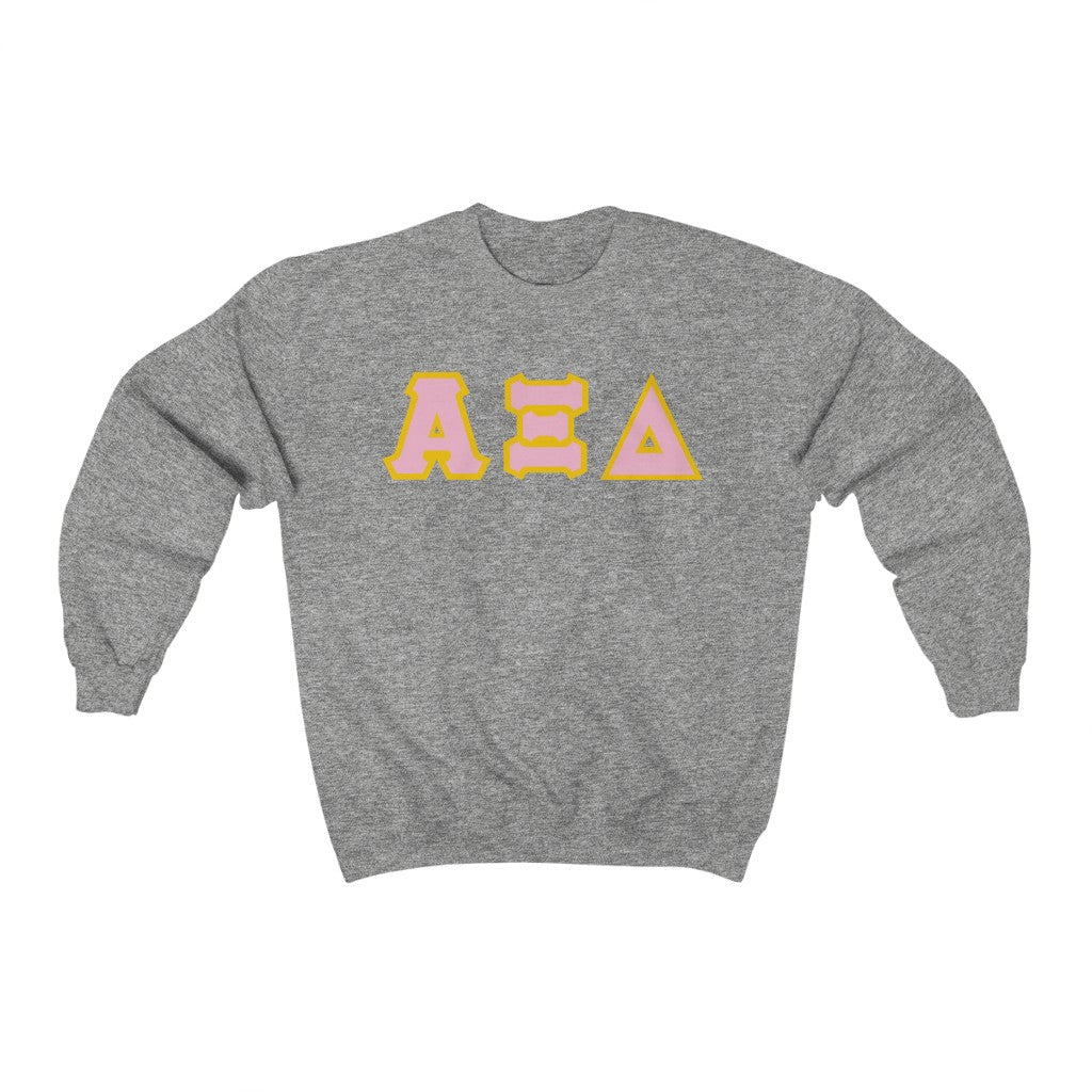 These Alpha Xi Delta sorority letters are printed NOT stitched. They come in a number of color and garment options.