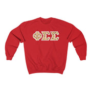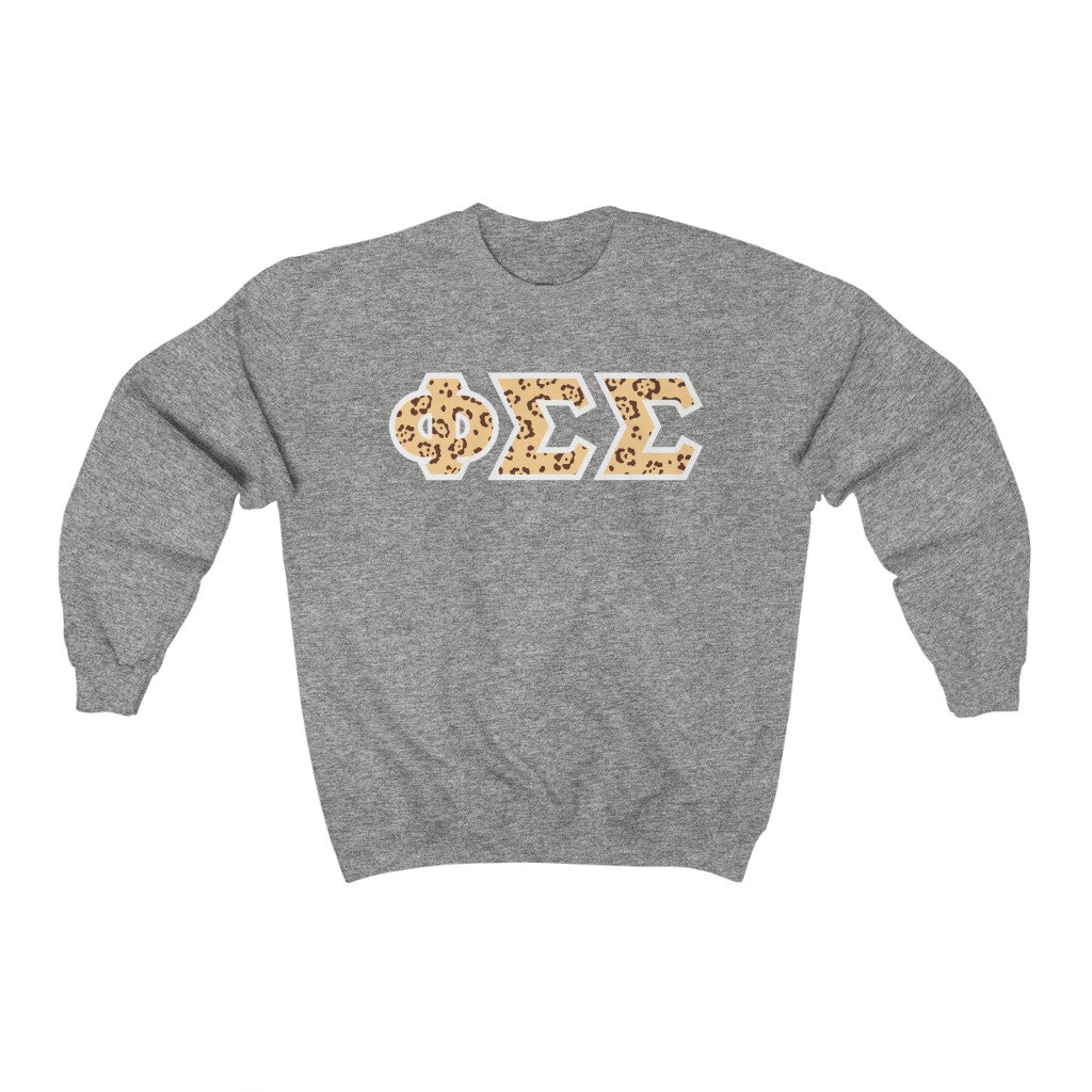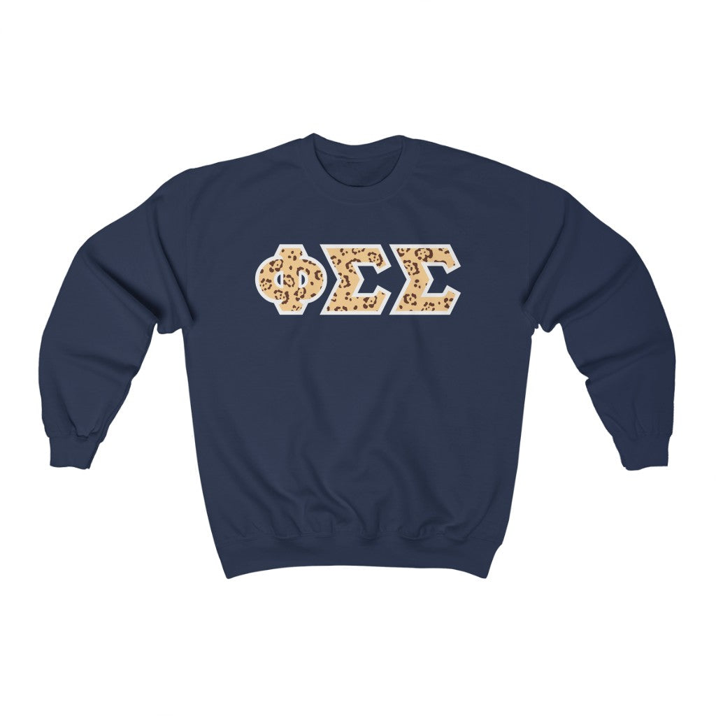 Phi Sigma Sigma Printed Letters | Leopard Print Crewneck