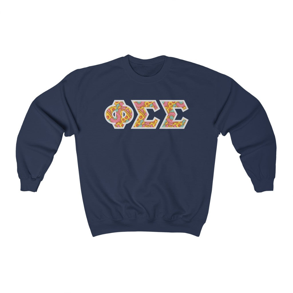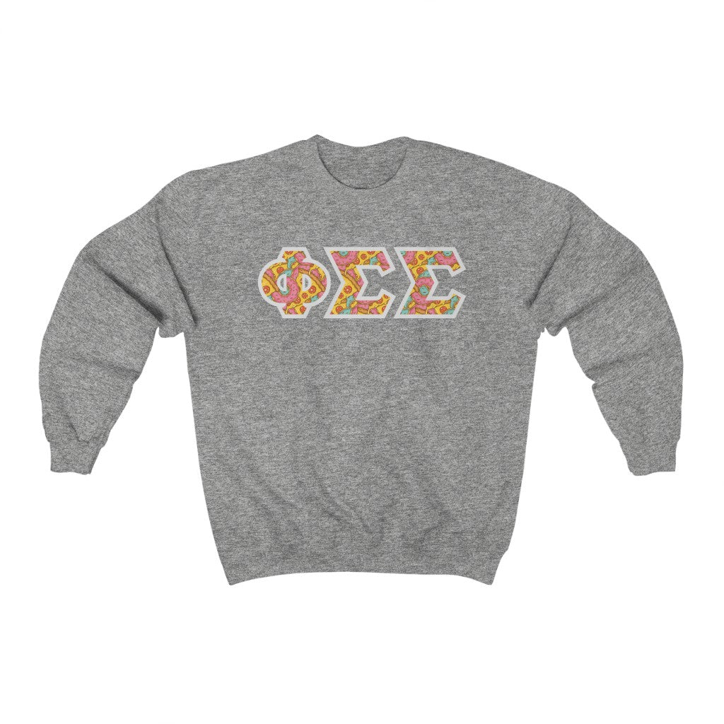 Phi Sigma Sigma Printed Letters | Pizza and Donuts Crewneck