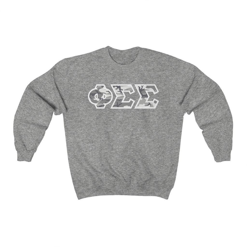 Phi Sigma Sigma Printed Letters | Winter Camo Crewneck