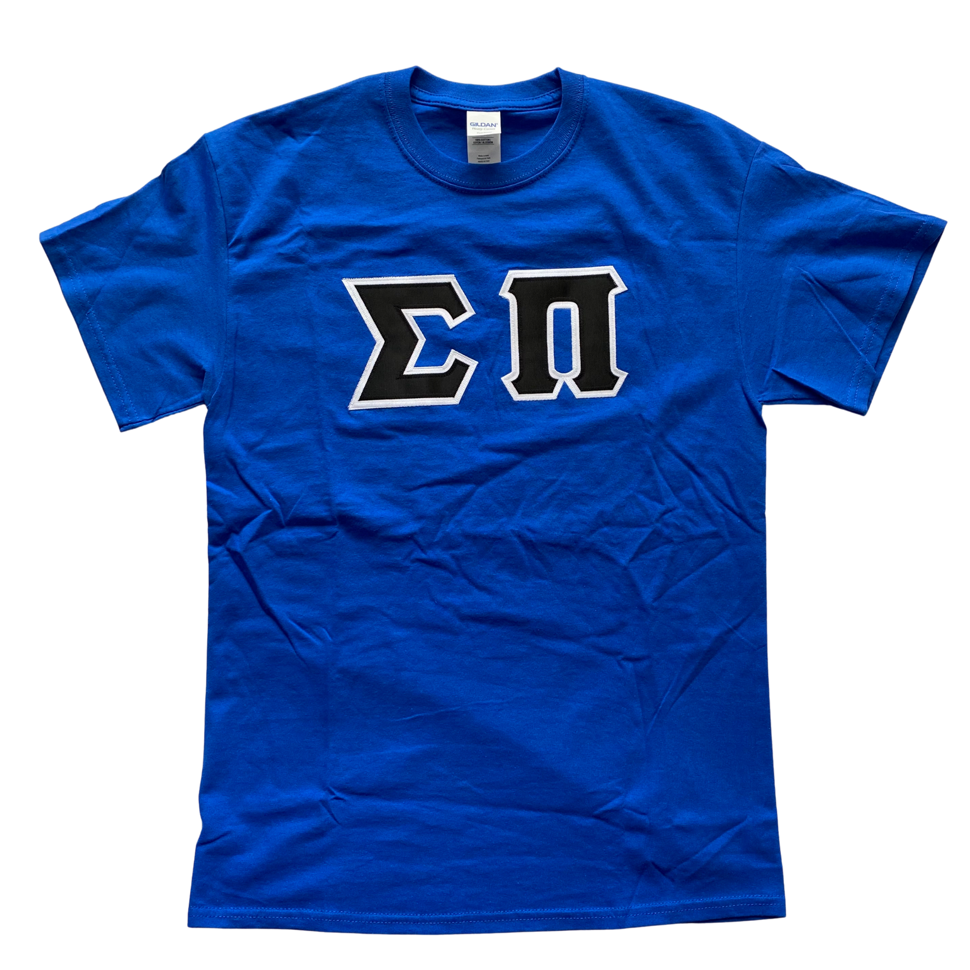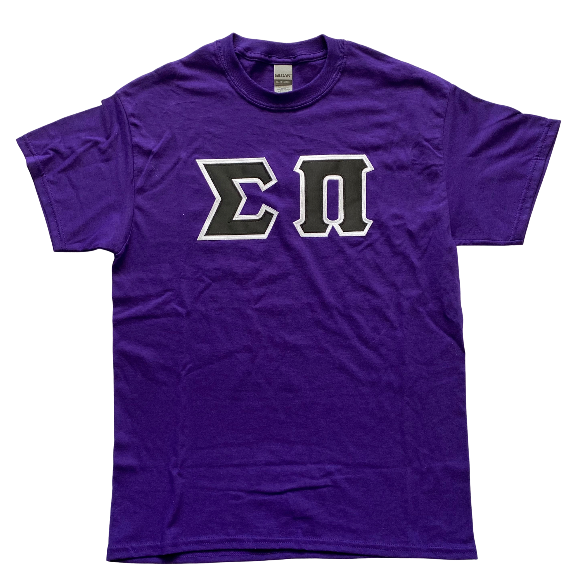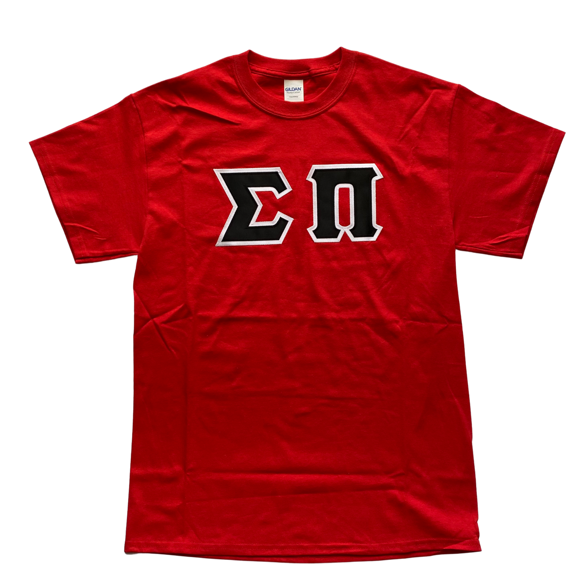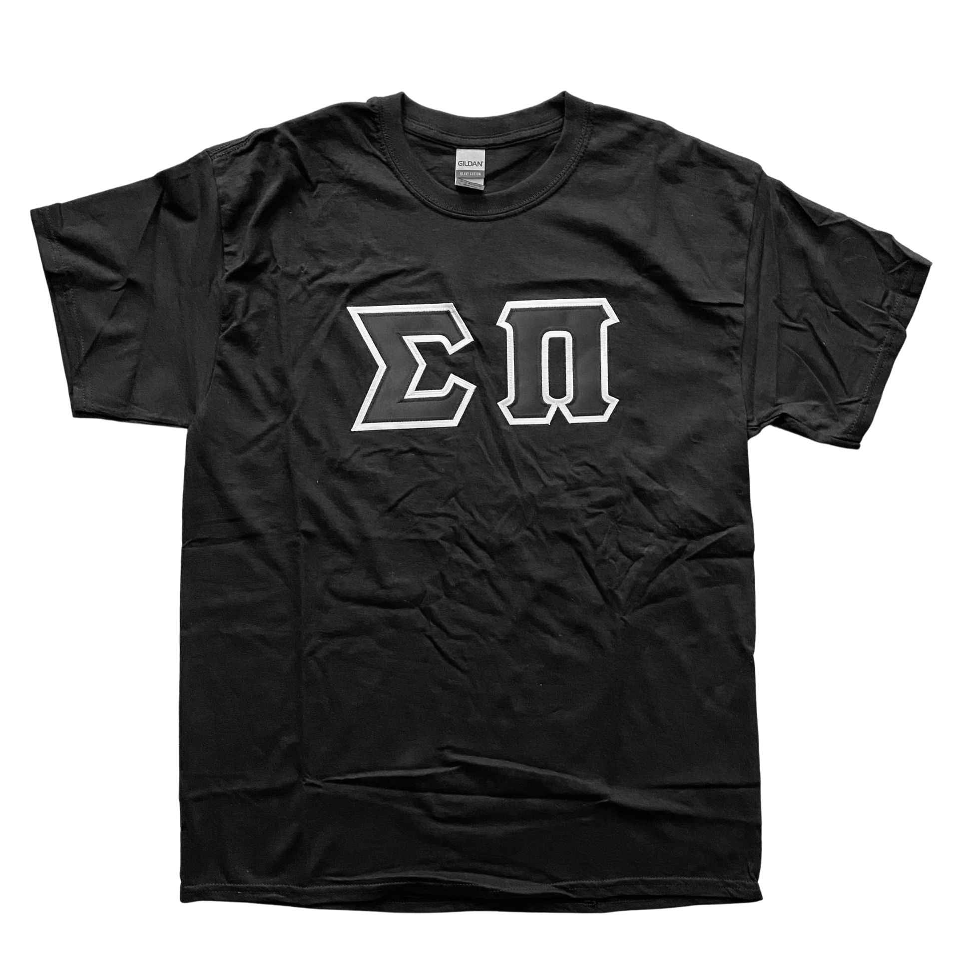 Sigma Pi Stitched Letter T-Shirt | Black Letters with White Border