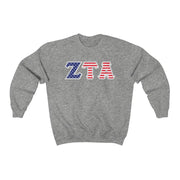 Zeta Tau Alpha Printed Letters | American Flag Crewneck
