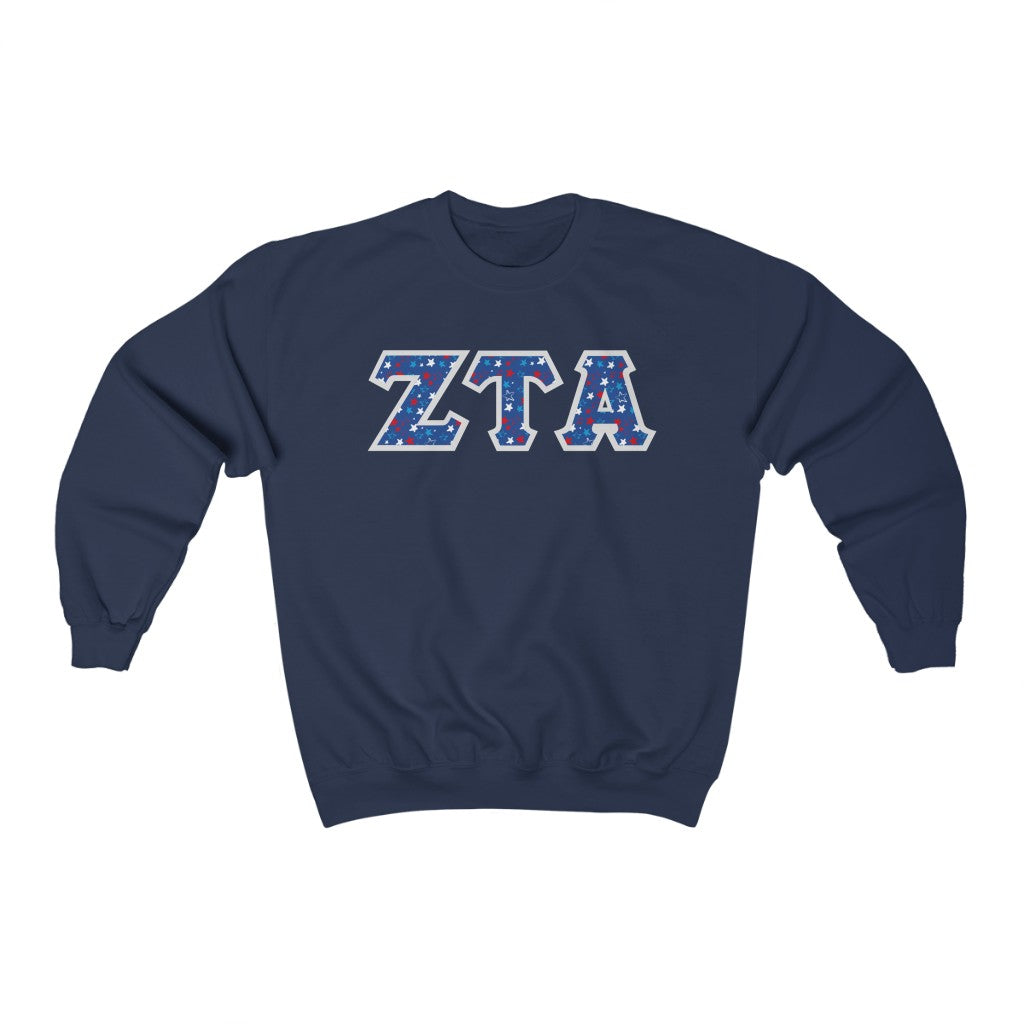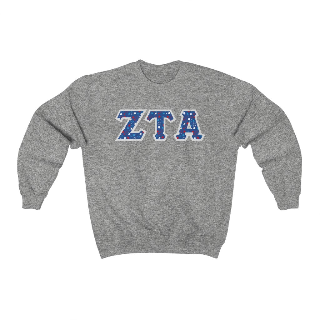 Zeta Tau Alpha Printed Letters | USA Stars Crewneck