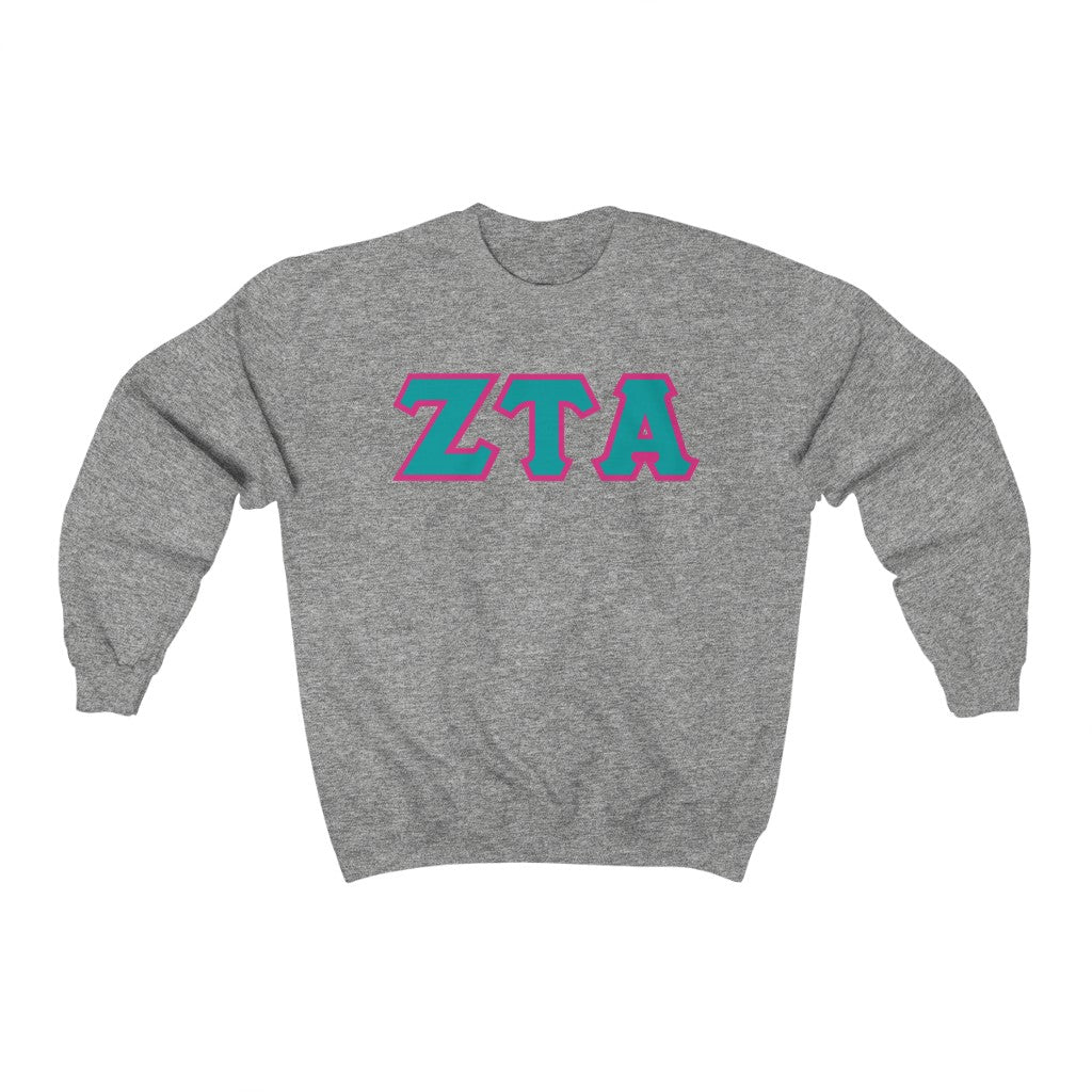 ZTA Printed Letters | Turquoise & Hot Pink Border Crewneck
