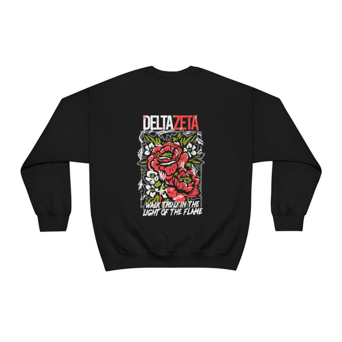 Delta Zeta Graphic Crewneck Sweatshirt | Grunge Roses