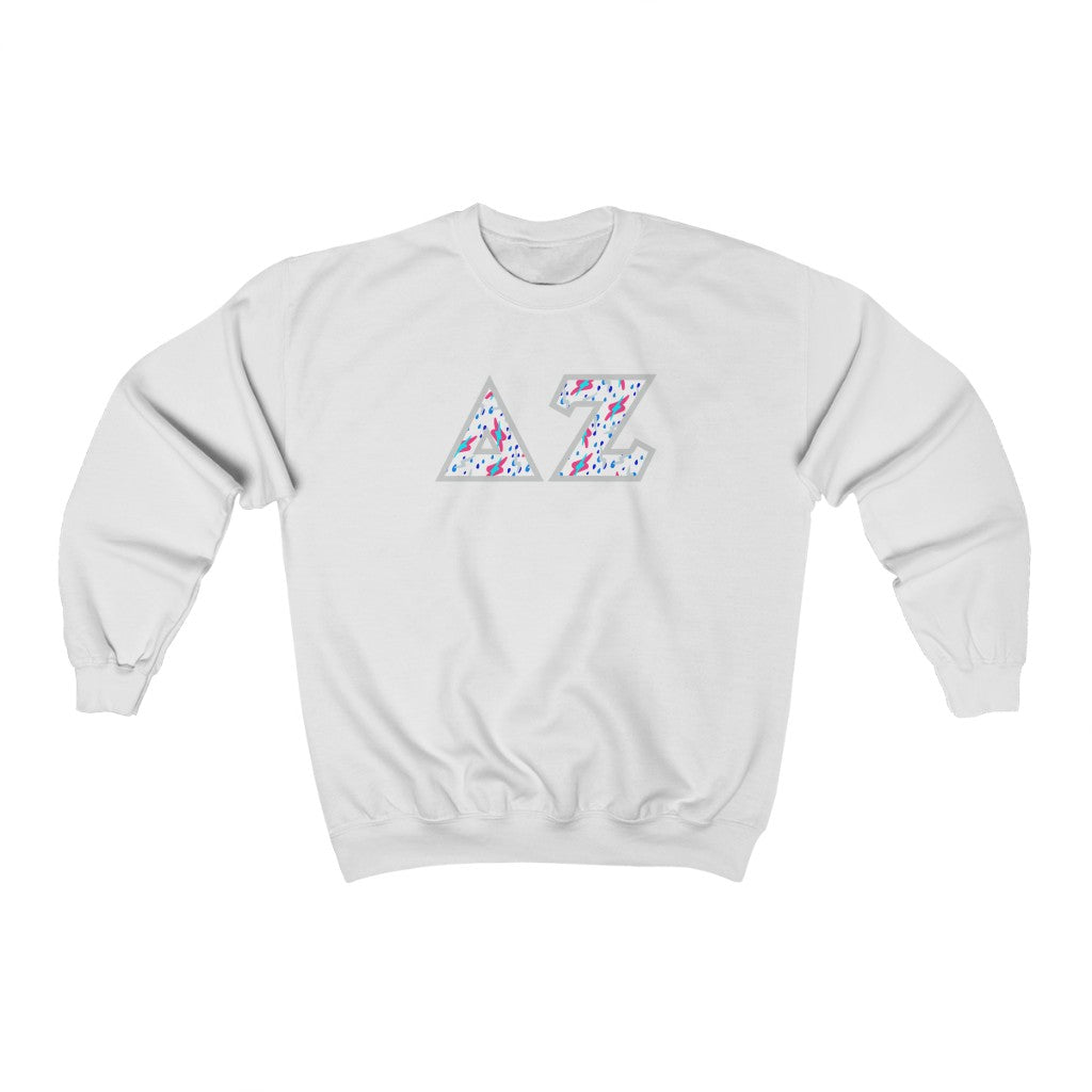 Delta Zeta Printed Letters| Bayside White Crewneck