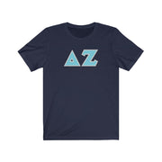 Delta Zeta Printed Letters | Cyan & Grey Border T-Shirt