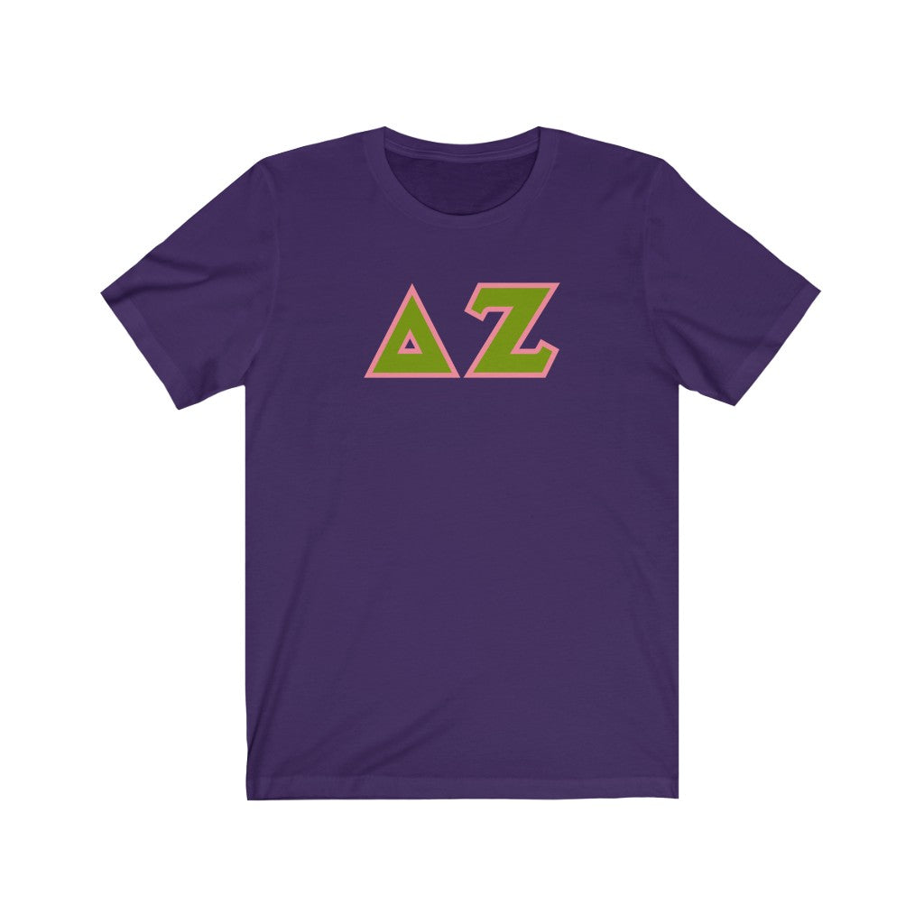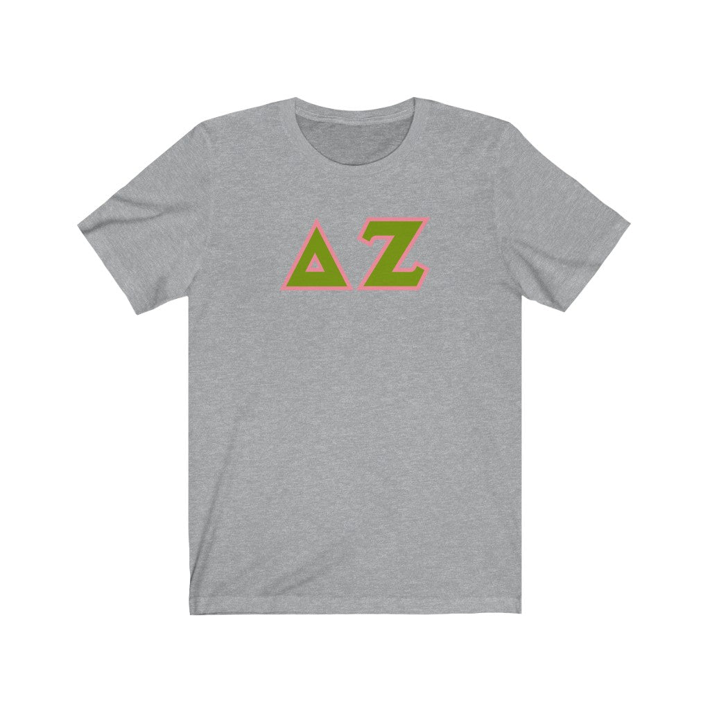 Delta Zeta Printed Letters | Green & Pink Border T-Shirt