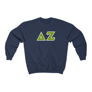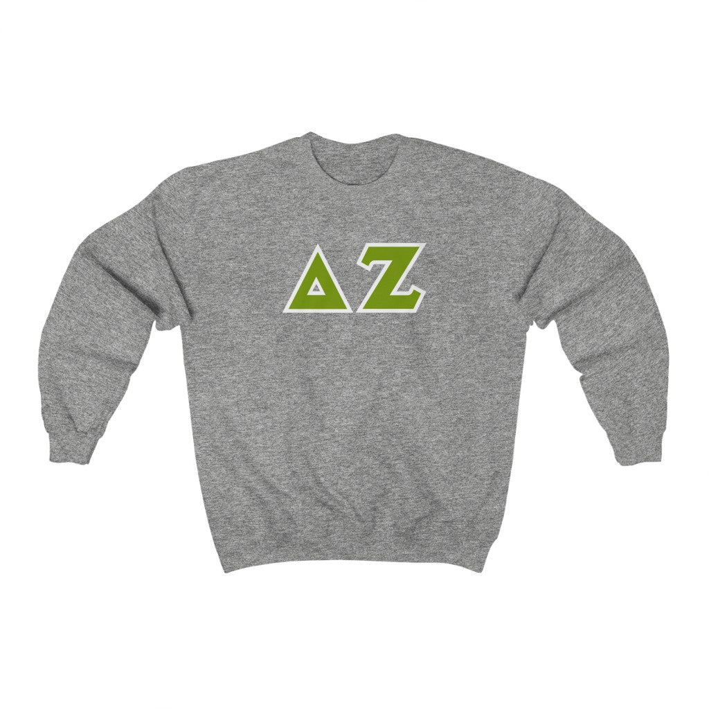 Delta Zeta Printed Letters | Green & White Border Crewneck