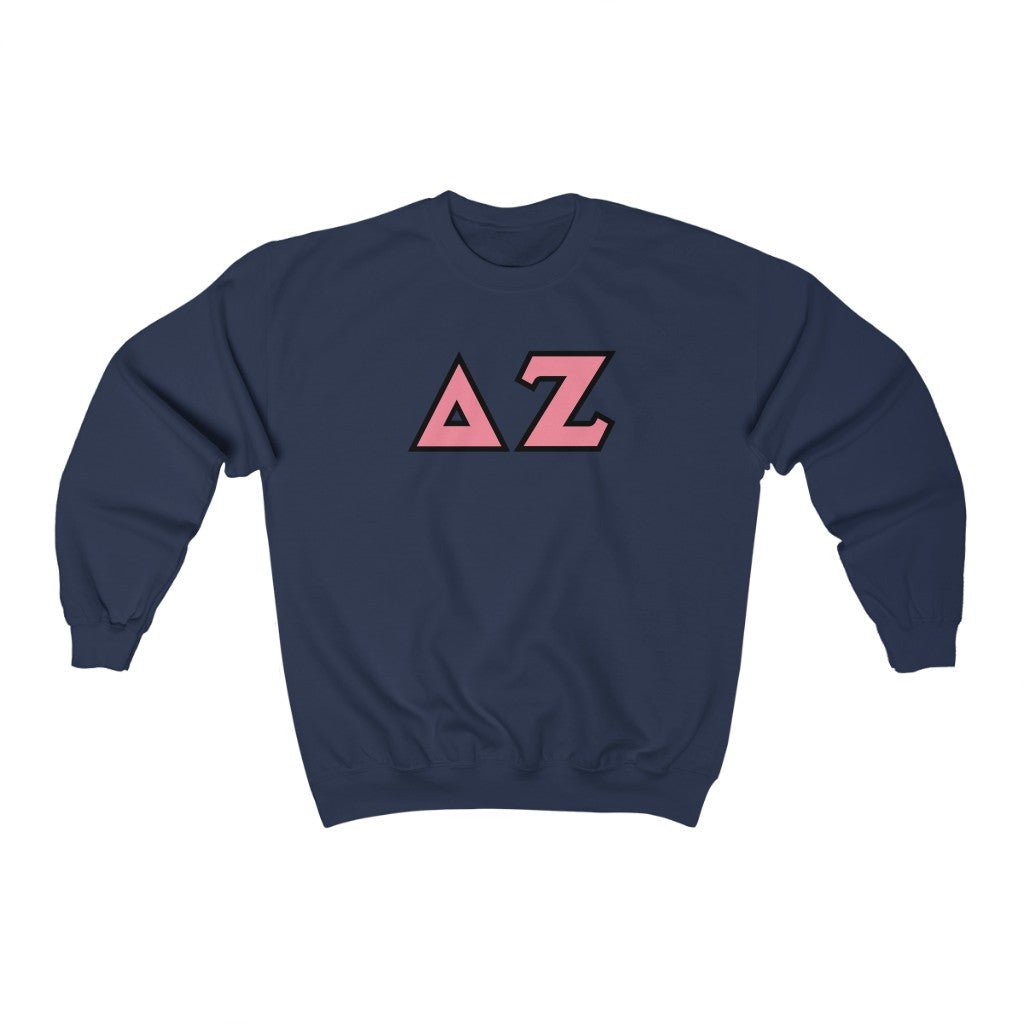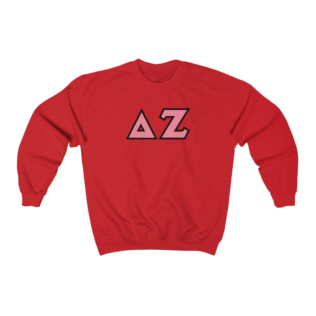 Delta Zeta Printed Letters | Pink & Black Border Crewneck
