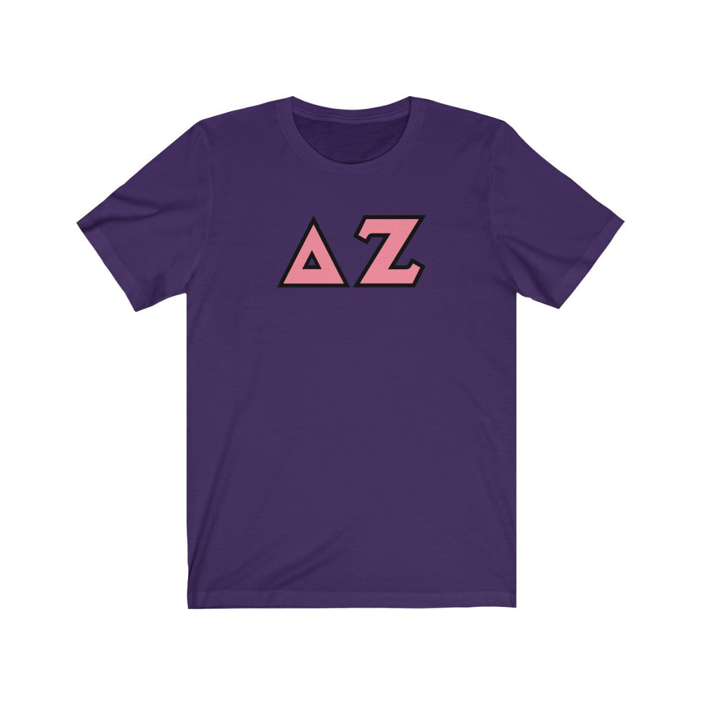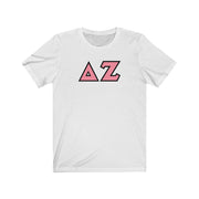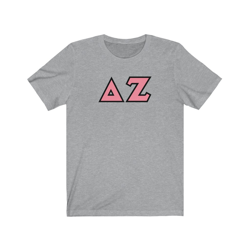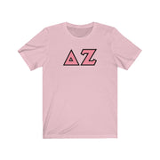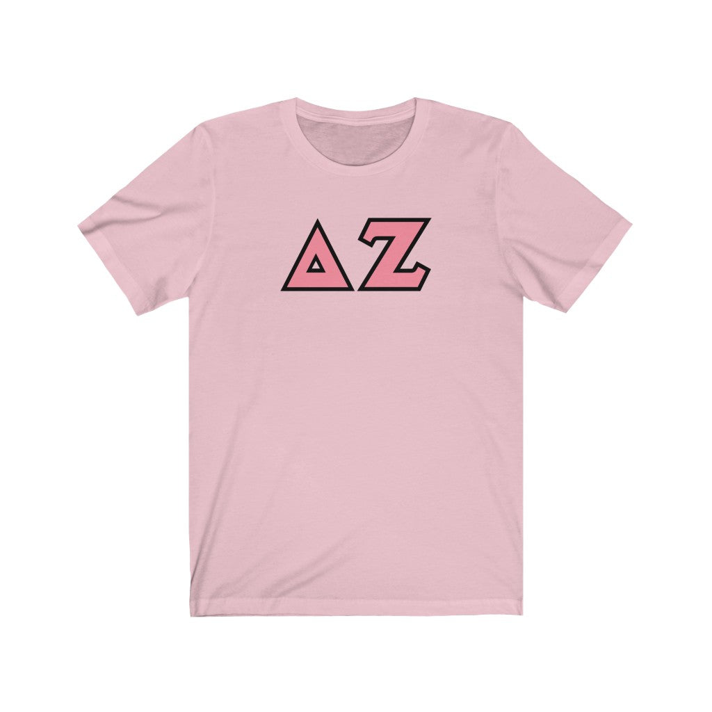 Delta Zeta Printed Letters | Pink & Black Border T-Shirt