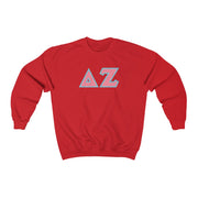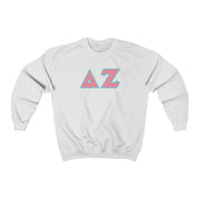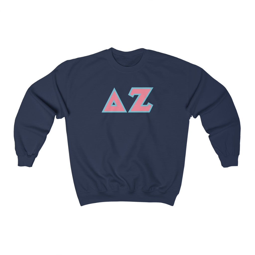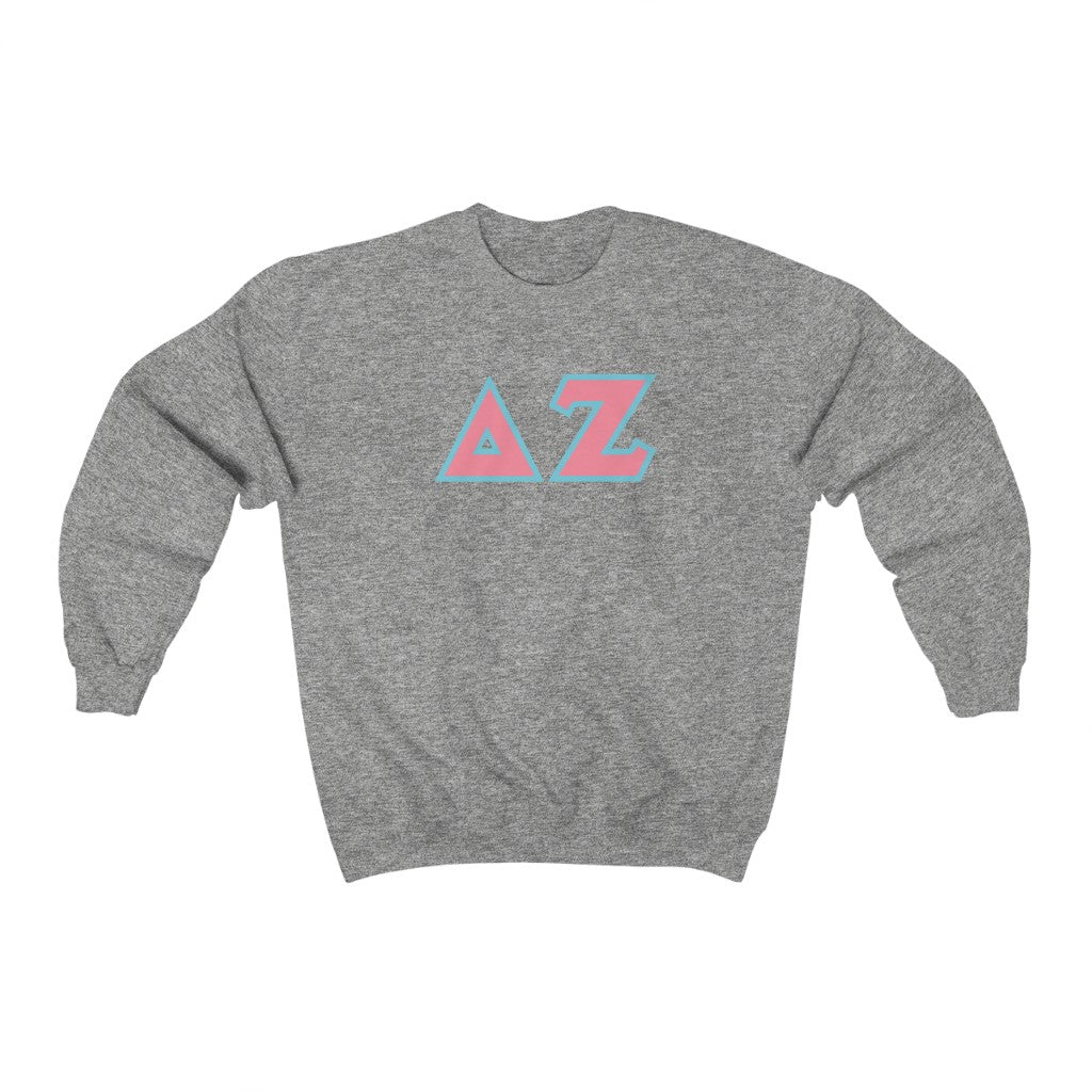 Delta Zeta Printed Letters | Pink & Cyan Border Crewneck