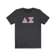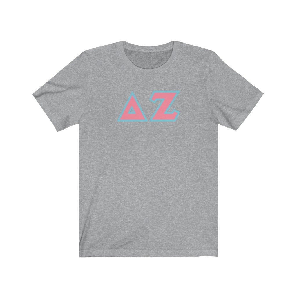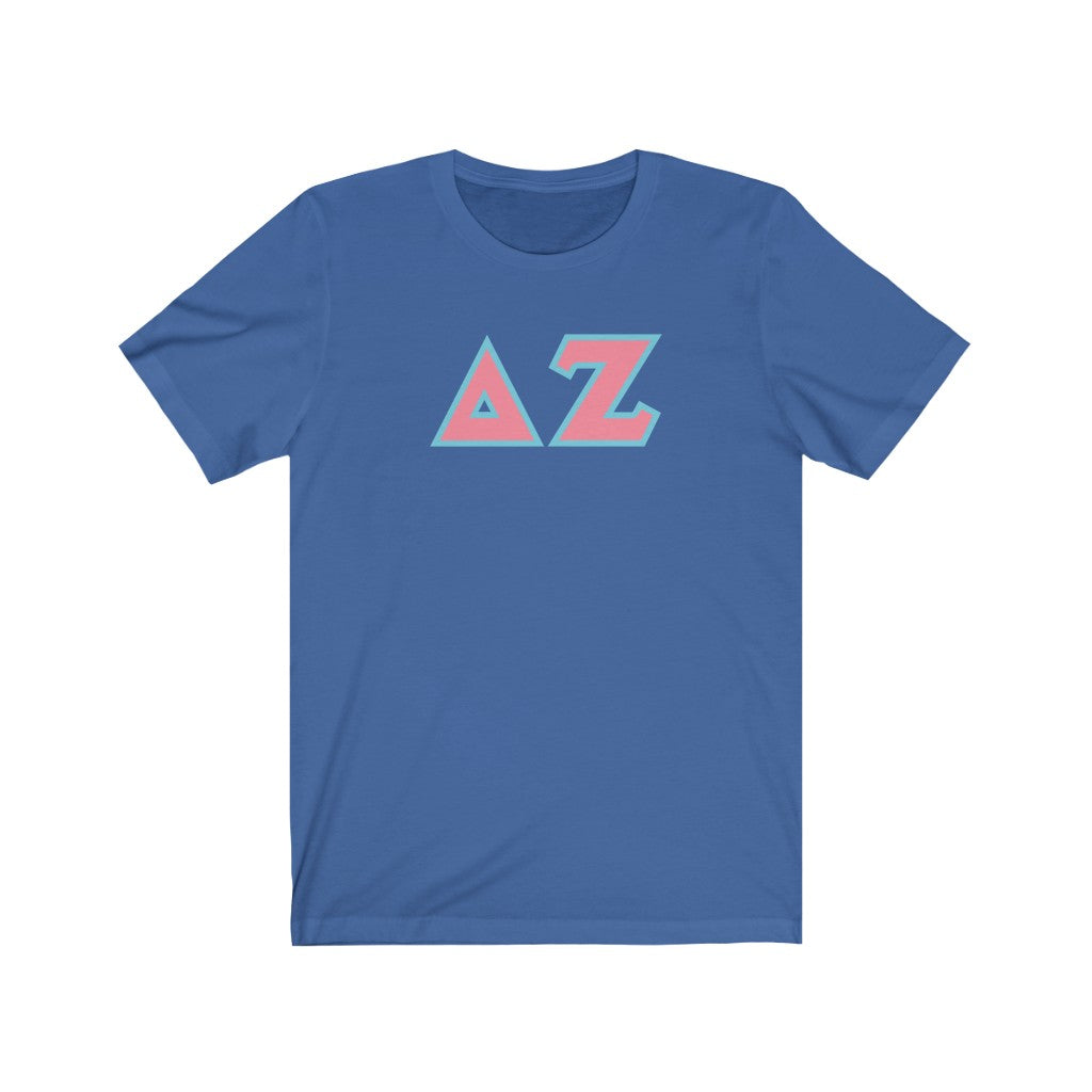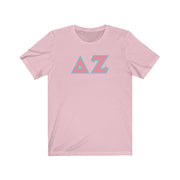 Delta Zeta Printed Letters | Pink & Cyan Border T-Shirt