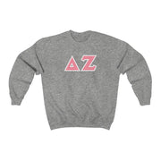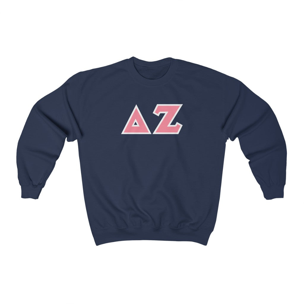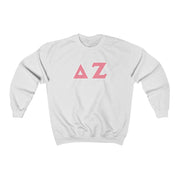 Delta Zeta Printed Letters | Pink & White Border Crewneck