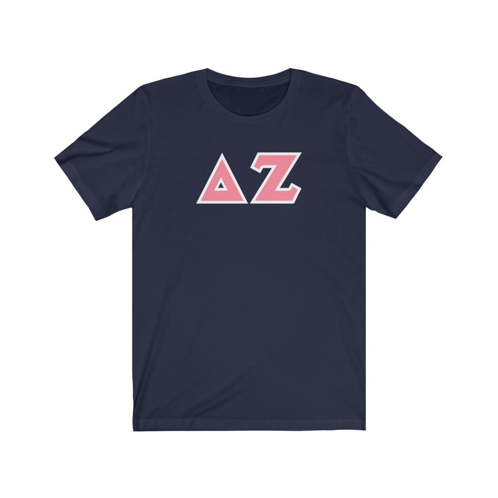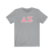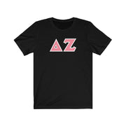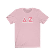 Delta Zeta Printed Letters | Pink & White Border T-Shirt
