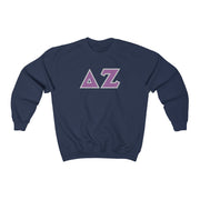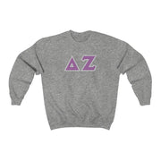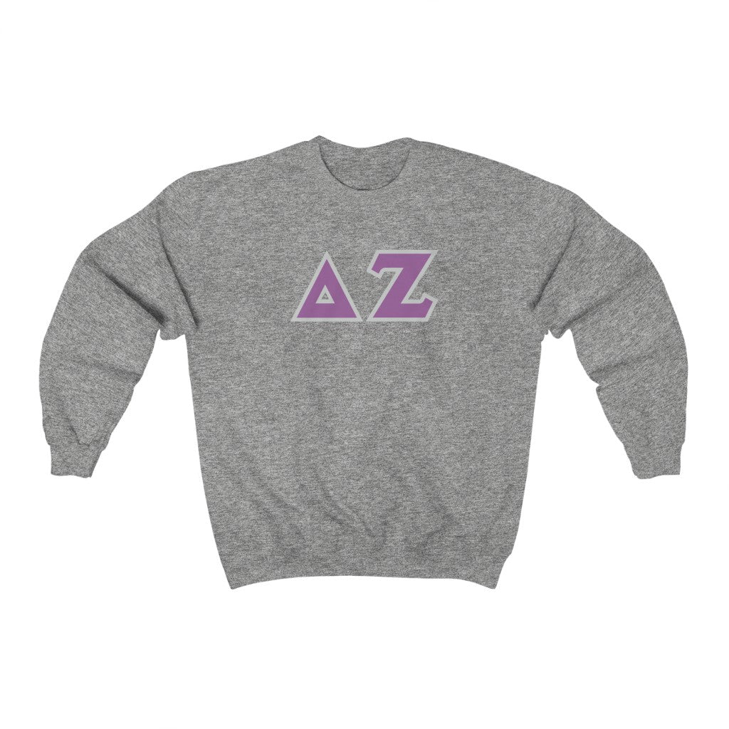 Delta Zeta Printed Letters | Purple & Grey Border Crewneck