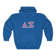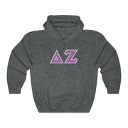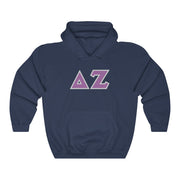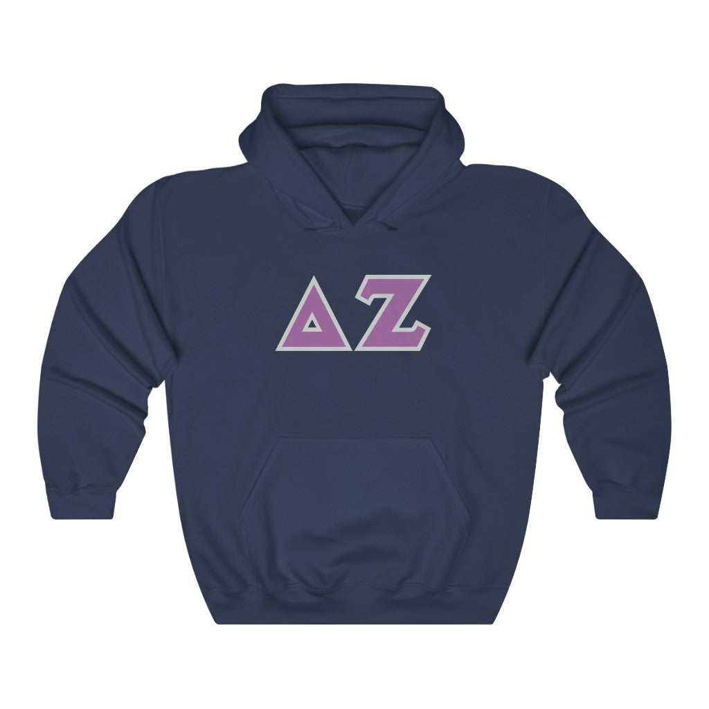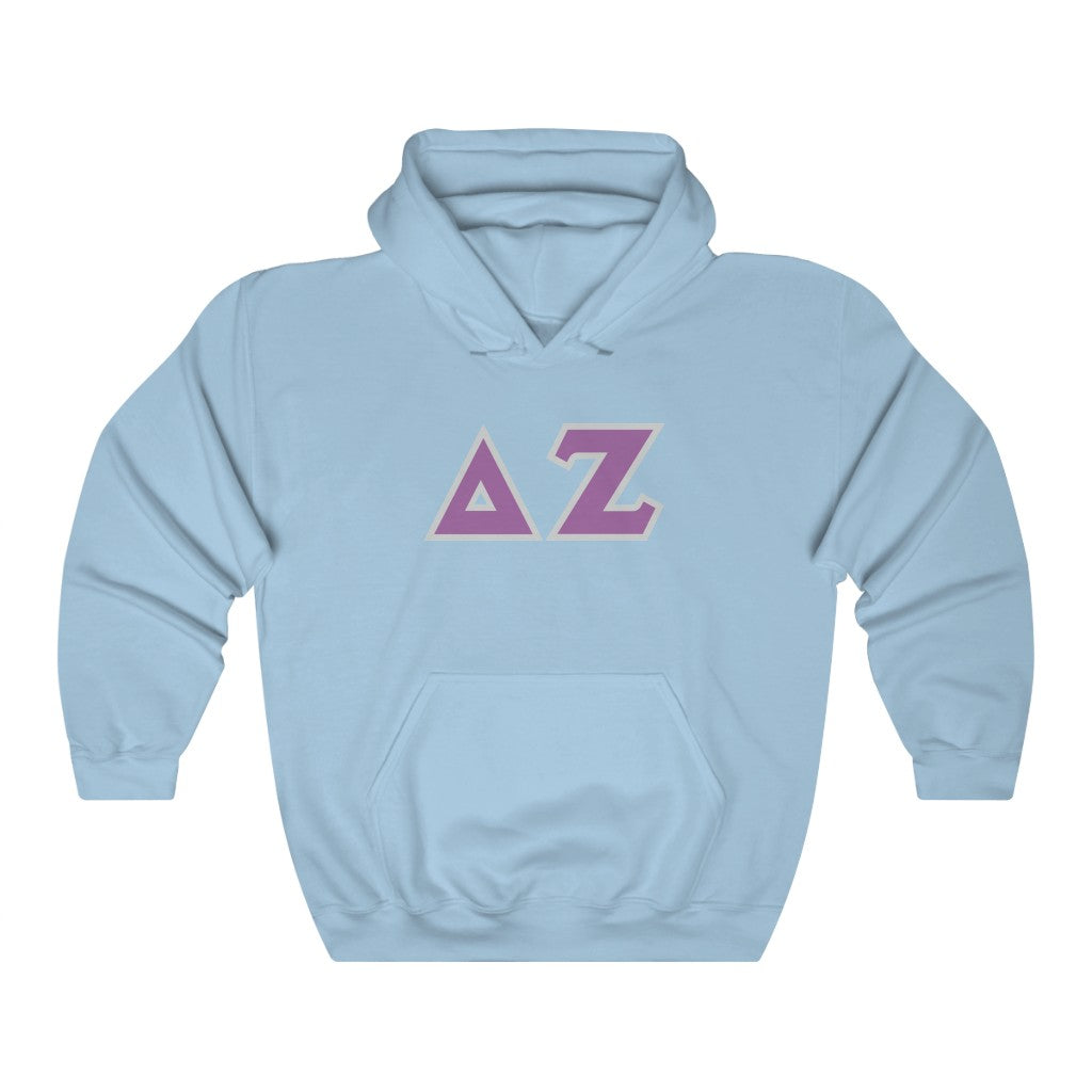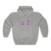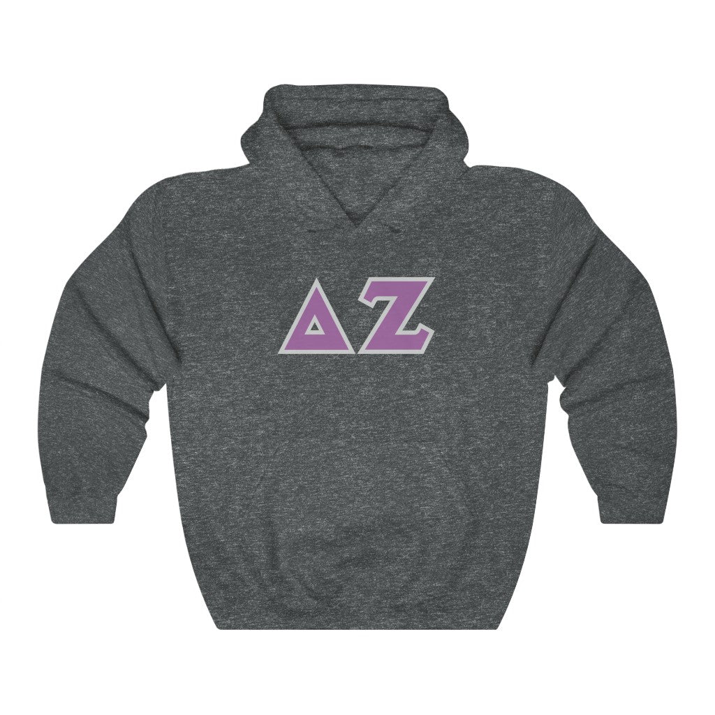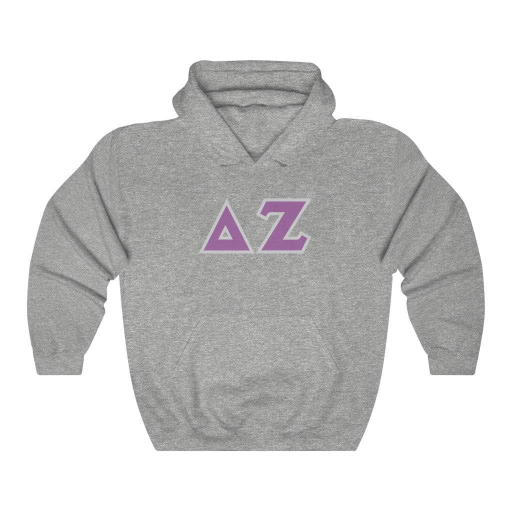 Delta Zeta Printed Letters | Purple & Grey Border Hoodie