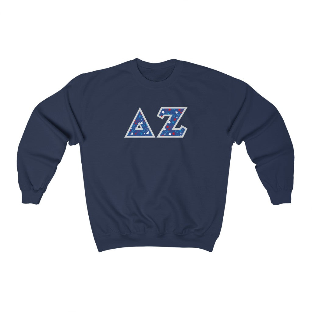 Delta Zeta Printed Letters | USA Stars Crewneck