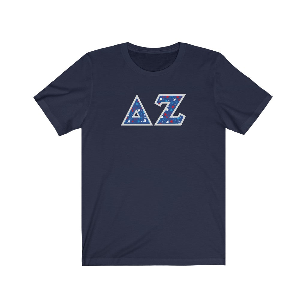 Delta Zeta Printed Letters | USA Stars T-Shirt