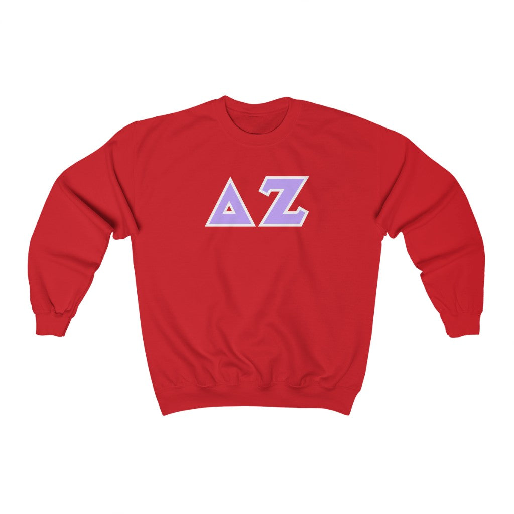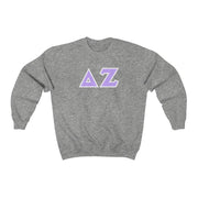 Delta Zeta Printed Letters | Violet & White Border Crewneck