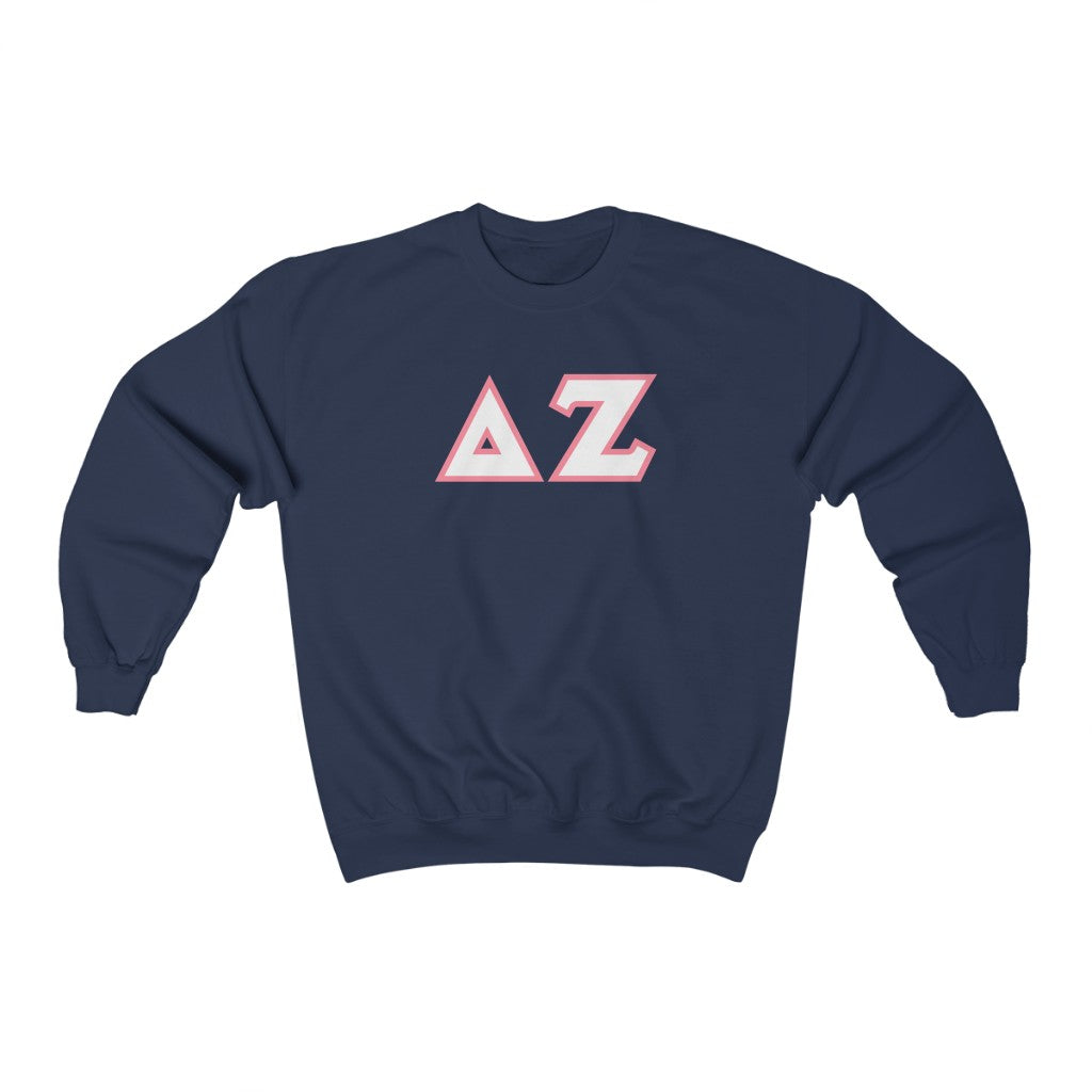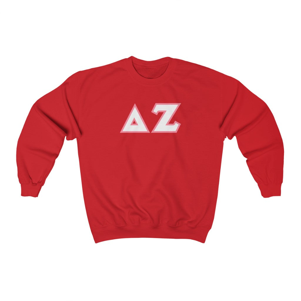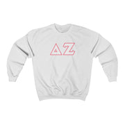 Delta Zeta Printed Letters | White & Pink Border Crewneck